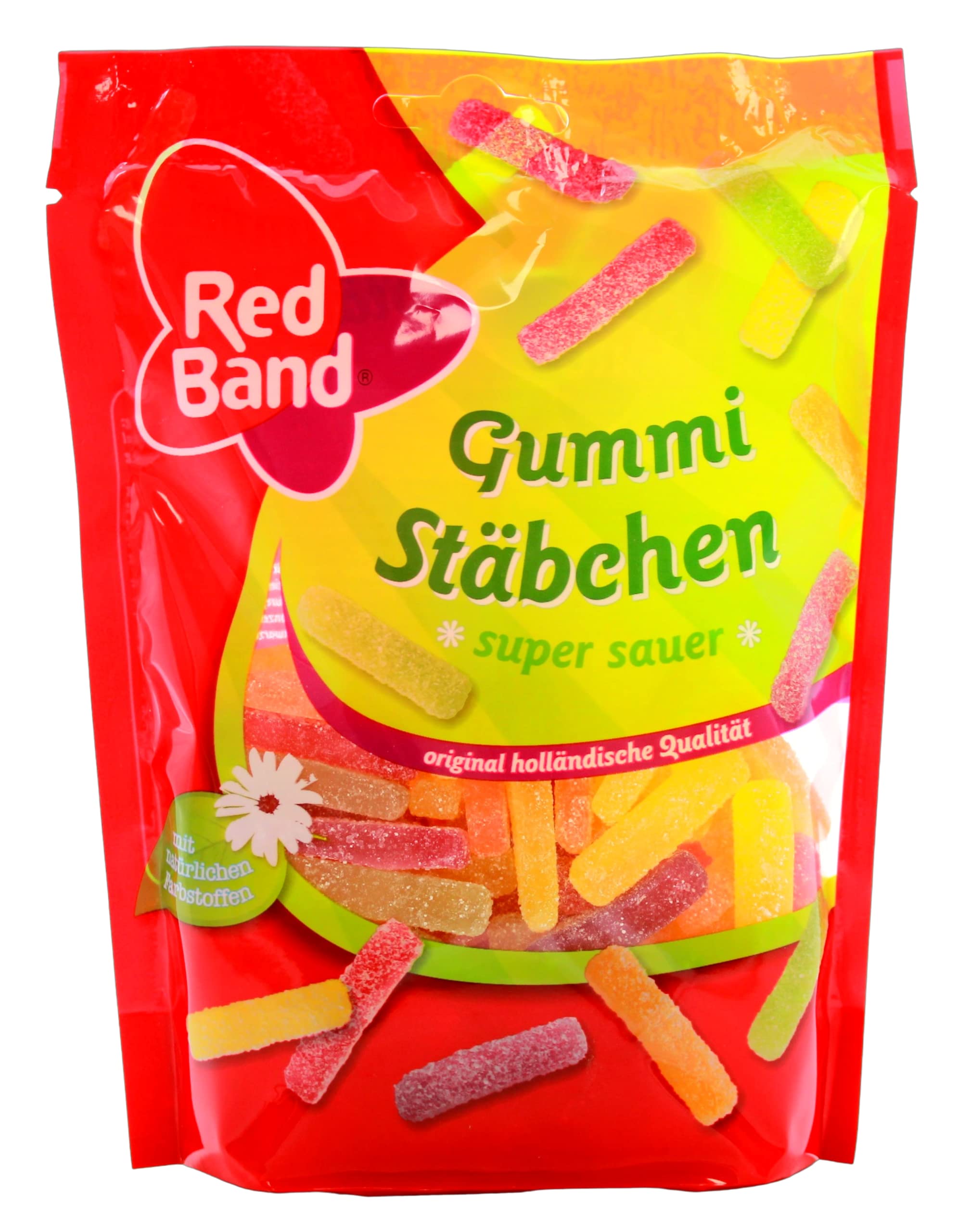 Saurer Coat, Soft Core – a recipe for success in mouth-friendly sticks. Sticks in boxes? A concept that works perfectly in this case. These are small, mouth-friendly sticks, just waiting to be securely sewn into your car pack. They should be especially welcome for anyone with a low tolerance for sour candies. The sugar coating the delicious hard fruit jelly is just right: super sour, fizzy, and a real boost for sucking and chewing. INGREDIENTS Ingredients: Sugar, glucose syrup, modified starch, acidifier (apple acid, lactic acid), gelatin, fully hardened palm fat, flavorings, concentrate (black root, carrot, blackcurrant, nettle, spinach), colors (pepper extract, curcumin). SAFETY WARNING Protect from heat and moisture. See moreRed Band Lot de 11 bâtonnets en caoutchouc Super Sauer - 11 x sac debout de 200 g - Gomme aux fruits super sauer - Gaine acide, noyau mignon - Qualité néerlandaiseDESCRIPTION DU PRODUIT DESCRIPTION DU PRODUIT Manteau Saurer, noyau doux – une recette du succès dans des bâtonnets adaptés à la bouche. Bâtonnets dans des boîtes ? Un concept qui fonctionne parfaitement dans ce cas. Car il s'agit de petites baguettes adaptées à la bouche, qui attendent d'être cousues en toute sécurité dans votre pack de voiture. Ils devraient être particulièrement heureux pour tous ceux qui ont un faible niveau de bonbons acides. Le sucre qui enveloppe le délicieux gélifiement dur des fruits est exactement ce qu'il faut : super acide, pétillant, et un véritable coup de pouce pour sucer et mâcher. INGRÉDIENTS Ingrédients : sucre, sirop de glucose, amidon modifié, acidifiant (acide pomme, acide lactique), gélatine, graisse de palme entièrement durcie, arômes, concentré (racine noire, carotte, cassis, ortie, épinard), colorants (extrait de poivre, curcumin). AVERTISSEMENT DE SÉCURITÉ Protéger de la chaleur et de l'humidité. Voir plus