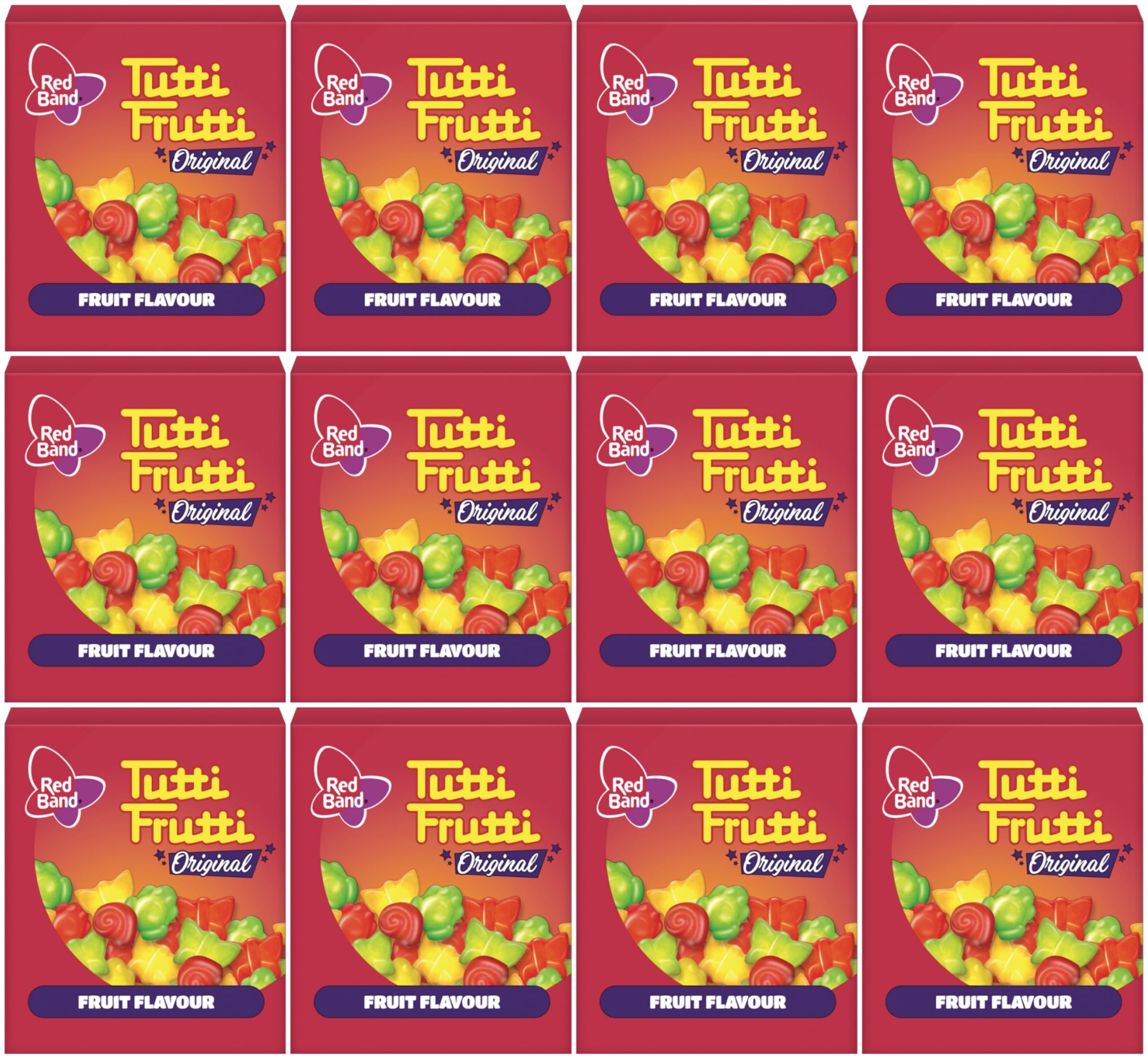 Red Band Tutti Frutti Original - Fruit Flavour - 12 paquets [12 x15 g] Gomme aux fruits