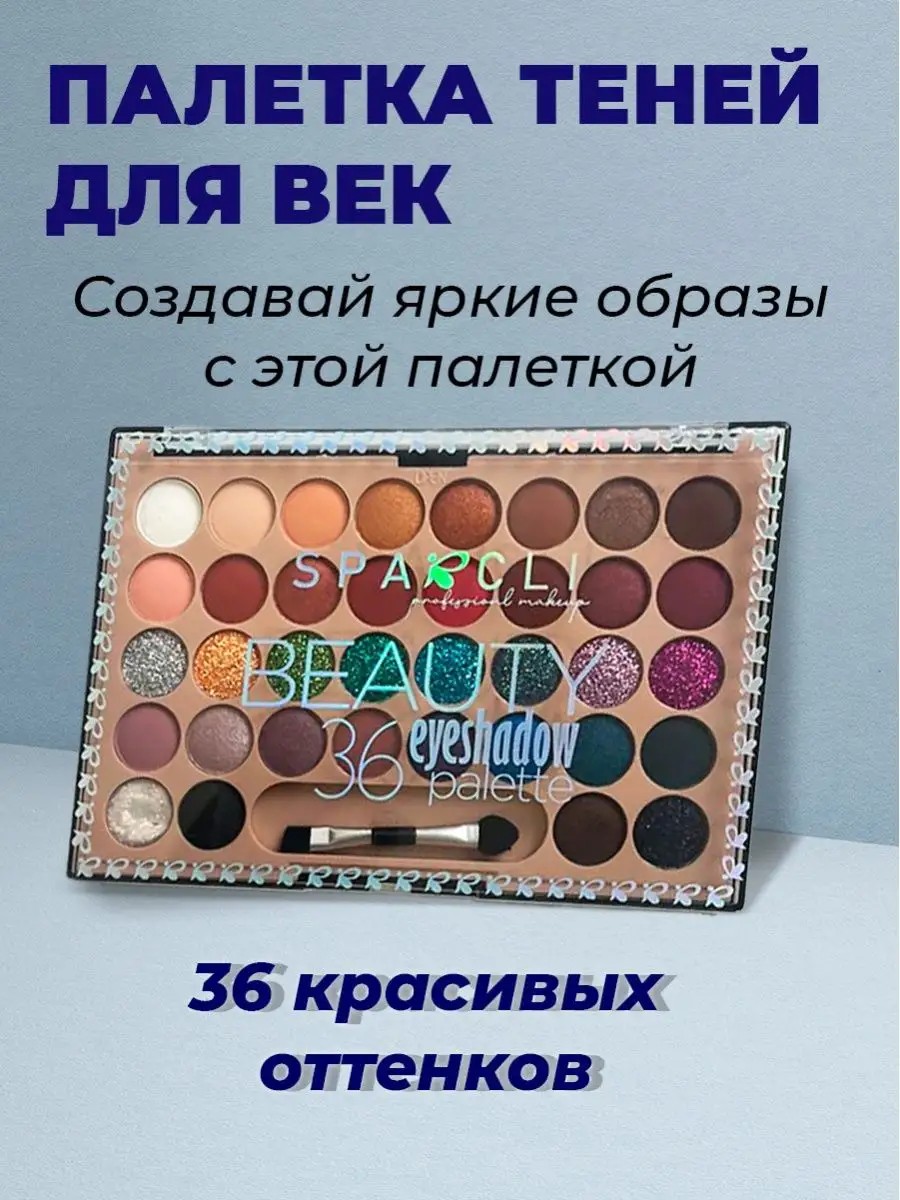 Новинка! Палетка теней для век из 36 ярких оттенков. Она содержит в себе и матовые и сатиновые оттенки, также спарклы и черный матовый с блестками. Сочетание цветов позволит вам делать и нюдовый макияж и яркий вечерний. По-настоящему универсальная палетка, которая будет по душе каждому. Тени обладают мягкой, приятной формулой, которая легко тушуется и наслаивается, что позволит делать макияжи быстро, без дополнительных усилий.Станет идеальным подарком на новый год, не оставляя никого равнодушным.ВНИМАНИЕ: Спарклы и оттенки с блестками не предназначены для использования на глазах. Остерегайтесь попадания в глаза.