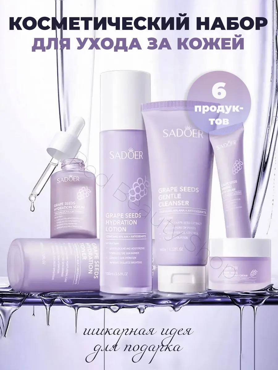 Подарочный набор косметики для ухода за лицом SADOER включает в себя гель для умывания, увлажняющий тонер и лосьон, питательную антивозрастную сыворотку и лифтинг крема для лица и глаз. Набор для умывания включает все, что нужно, чтобы кожа лица была идеальной, гладкой и светящейся молодостью. Антивозрастная косметика - это must-have в любой косметичке или полке в ванной. Несмотря на свое название, антивозрастная - не значит, что подходит только определенной группе людей, такой косметикой можно пользоваться как и взрослым людям для борьбы с существующими последствиями естественного старения, так и молодым для того, чтобы профилактировать первые признаки старения и появления морщин. Подойдет для любой кожи, даже для проблемной и чувствительной. Также благодаря ниацинамиду и другим активным элементам, которыми этот набор очень богат, набор с уходовой косметикой подойдет для борьбы с акне и пост акне, прыщами и другими несовершенствами. Шикарная подарочная коробка бьюти бокс станет отличным подарком на любой праздник для девушек, подруг, мам и коллег.