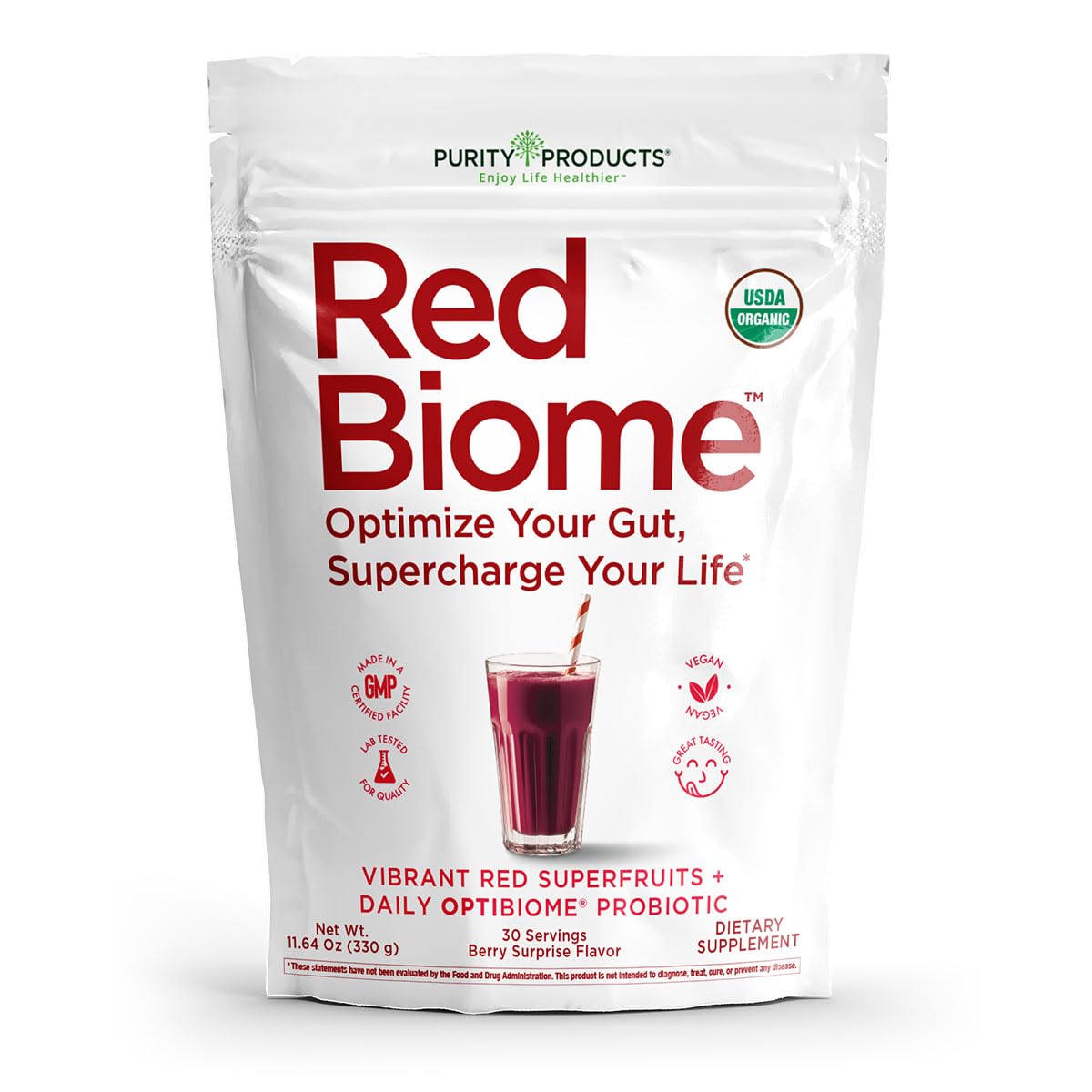 Feel the Red Biome Difference – Support Gut Health, Bloating Relief Daily Vitality Red Biome is a USDA Certified Organic gut health formula crafted with clinically studied OPTIBIOME Probiotic to support digestive balance and reduce occasional bloating, gas, and burping. This powerful probiotic is paired with organic plant-based ingredients designed to energize, nourish, and restore your gut microbiome from the inside out. ✓ Gut Biome Digestive Support with OPTIBIOME Clinically studied to promote digestive comfort, OPTIBIOME helps you feel lighter and more at ease by addressing occasional bloating and gas — without requiring refrigeration. ✓ 3 Organic Superfood Blends Red Biome features 20 antioxidant-rich fruits, berries, and botanicals across three synergistic blends: Organic Energy Support Blend – With organic beets, pomegranate, tart cherry, and papaya to help fuel vitality Organic Super Berry Blend – Packed with cranberries, raspberries, and strawberries for antioxidant support Organic Antioxidant Vitality Blend – Includes green tea and American ginseng for balanced energy ✓ 4g of Organic Fiber for Digestive Regularity Formulated with a blend of organic fibers that support gut health, promote satiety, and help maintain digestive regularity. ✓ Naturally Delicious Easy to Use Enjoy a refreshing natural berry flavor with no artificial sweeteners. Just mix one scoop into water for a daily boost of gut health and wellness. ✓ USDA Certified Organic Vegan Non-GMO No Artificial Sweeteners These statements have not been evaluated by the Food and Drug Administration. This product is not intended to diagnose, treat, cure, or prevent any disease.QUALITY SAFETY: Our FDA-inspected manufacturing facilities are 3rd-party certified and audited by our Quality Assurance Dept. for compliance with Good Manufacturing Practices (cGMP). All phases of production - raw material handling, bottling, labeling, and lab testing - are done in a clean environment to ensure product purity and potency. DELICIOUS NATURAL BERRY FLAVOR - JUST MIX SIP: Red Biome is naturally sweetened with no artificial ingredients — easy to mix and enjoy daily for gut health, digestive comfort, and clean, plant-powered energy support. . 4G OF ORGANIC FIBER TO PROMOTE REGULARITY: Each scoop delivers 4 grams of organic fiber from whole food sources — supporting healthy elimination, digestive comfort, and satiety to help you feel full and balanced. . ORGANIC SUPERFOOD BLENDS WITH 20 PLANT-BASED INGREDIENTS: Experience powerful antioxidant and phytonutrient support from organic beets, tart cherry, pomegranate, and berries — working together to enhance vitality and support healthy digestion. . CLINICALLY EFFECTIVE DOSE FOR DIGESTIVE SUPPORT: With a research-backed serving of OPTIBIOME, Red Biome delivers a clinically effective dose to help promote gut biome balance, digestive comfort, and overall wellness you can feel. . CLINICALLY STUDIED PROBIOTIC FOR GUT HEALTH: Red Biome features OPTIBIOME, a high-performance, patented probiotic clinically studied to support digestive balance and reduce occasional bloating, gas, and burping — helping you feel lighter and more comfortable. .