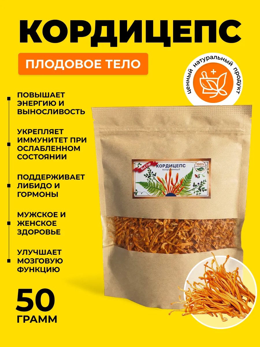 Кордицепс вооруженный - уникальный гриб. Замедляет дегенерацию хрящей, связанную с недостатком питания хрящевой ткани, снимает воспаление, боль и увеличивает подвижность больных суставов. Восполняет необходимый кальций, что приводит к улучшению состояния волос, зубов и ногтей: они становятся крепкими и здоровыми. Добавка пищевая полезна для сердца и сосудов. Используется в качестве детокса. Очищает организм от шлаков и токсинов. Для повышения иммунитета. Для мужчин и их здоровья, повышает либидо мужское и женское, нормализует работу предстательной железы, благодаря выработке тестостерона, также и эрекция усиливается. Также с повышенным фактором риска развития простаты или простатита. В плодовом теле более высокое содержание полисахаридов - основного действующего лечебного вещества. Сушка грибов производится при температуре 40 градусов, что обеспечивает полное сохранение фармалогических действий. Область назначения: антиоксидантная и противовоспалительная активность, иммуномодуляция, ноотропная. Антивирусные и антибактериальные свойства. Способ приема: сушеный гриб растолочь, взвесить 4-5 грамма, размешать в любом не алкогольном напитке и принимать 1 раз в день. Продолжительность один месяц. Противопоказания: беременность, детям до 18 лет, период лактации, аллергия, индивидуальная непереносимость.
