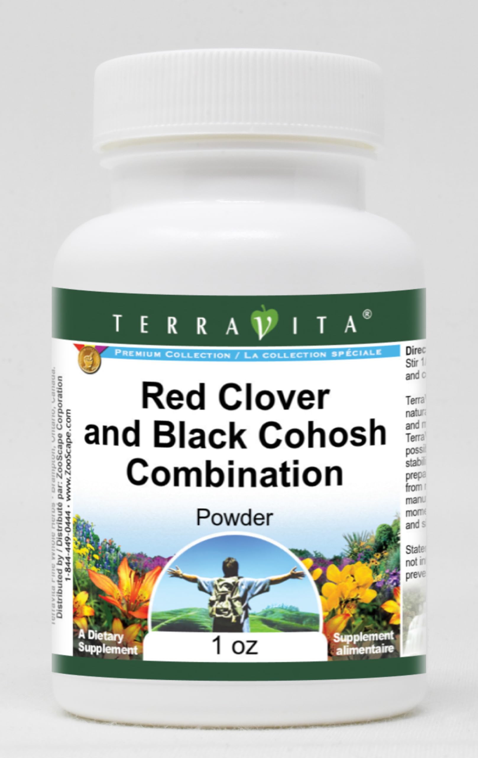 Convenient Powder format. Size: 1 oz. Manufacturer: TerraVita. No fillers. Red Clover and Black Cohosh Combination Powder (1 oz, ZIN: 512981).