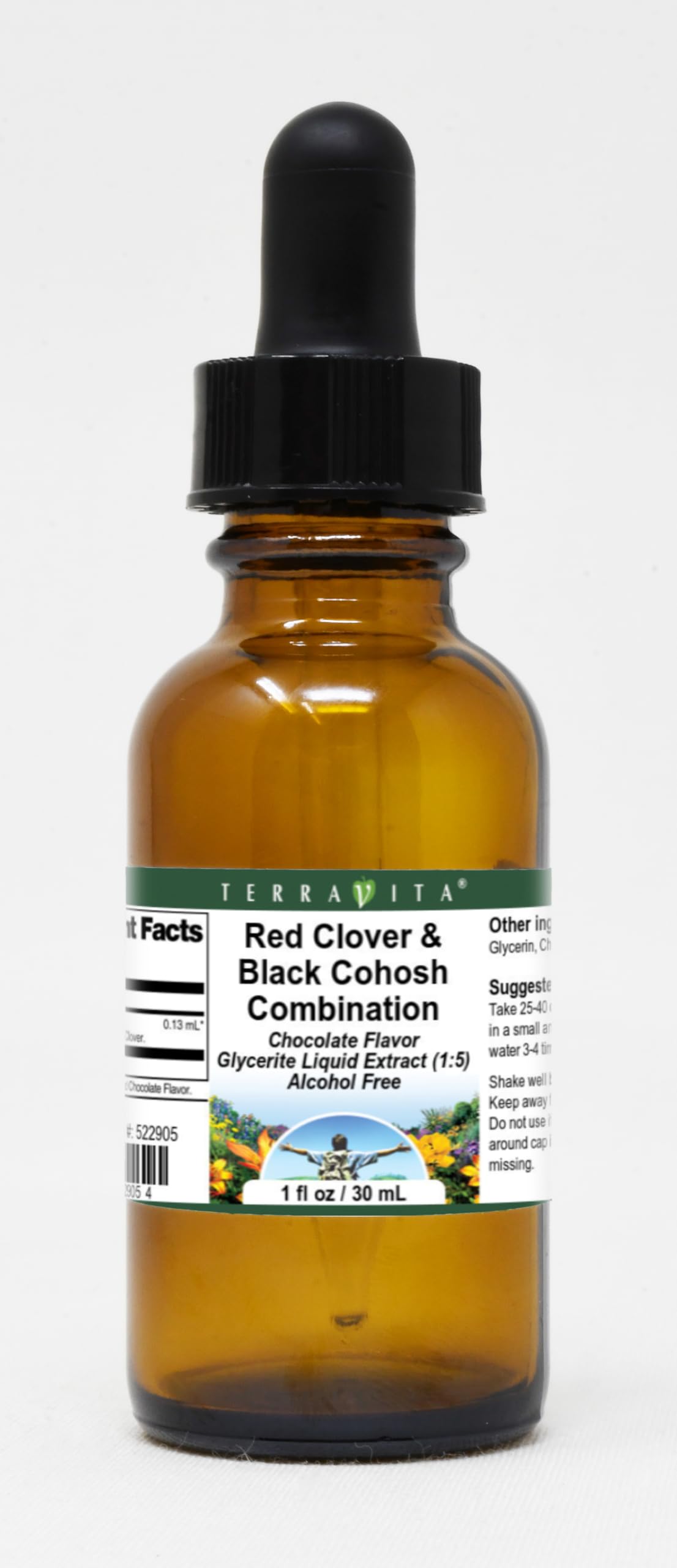 Red Clover Black Cohosh Combination Glycerite Liquid Extract (1:5) - Chocolate Flavored (1 oz, ZIN: 522905) Packaged in the United States in a GMP certified facility (Good Manufacturing Practice). No fillers. Manufacturer: TerraVita Size: 1 oz Convenient Liquid format. Ingredients: Artificial Chocolate Flavor, Glycerin (Vegetable Source), Black Cohosh Root, Red Clover