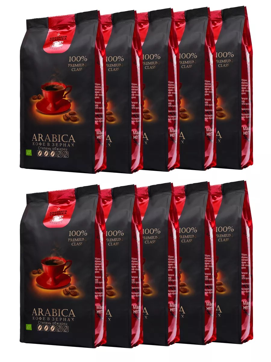 КРАСНАЯ ЧАШКА Кофе в зернах 1 кг Красная Чашка арабика набор из 10 пачек