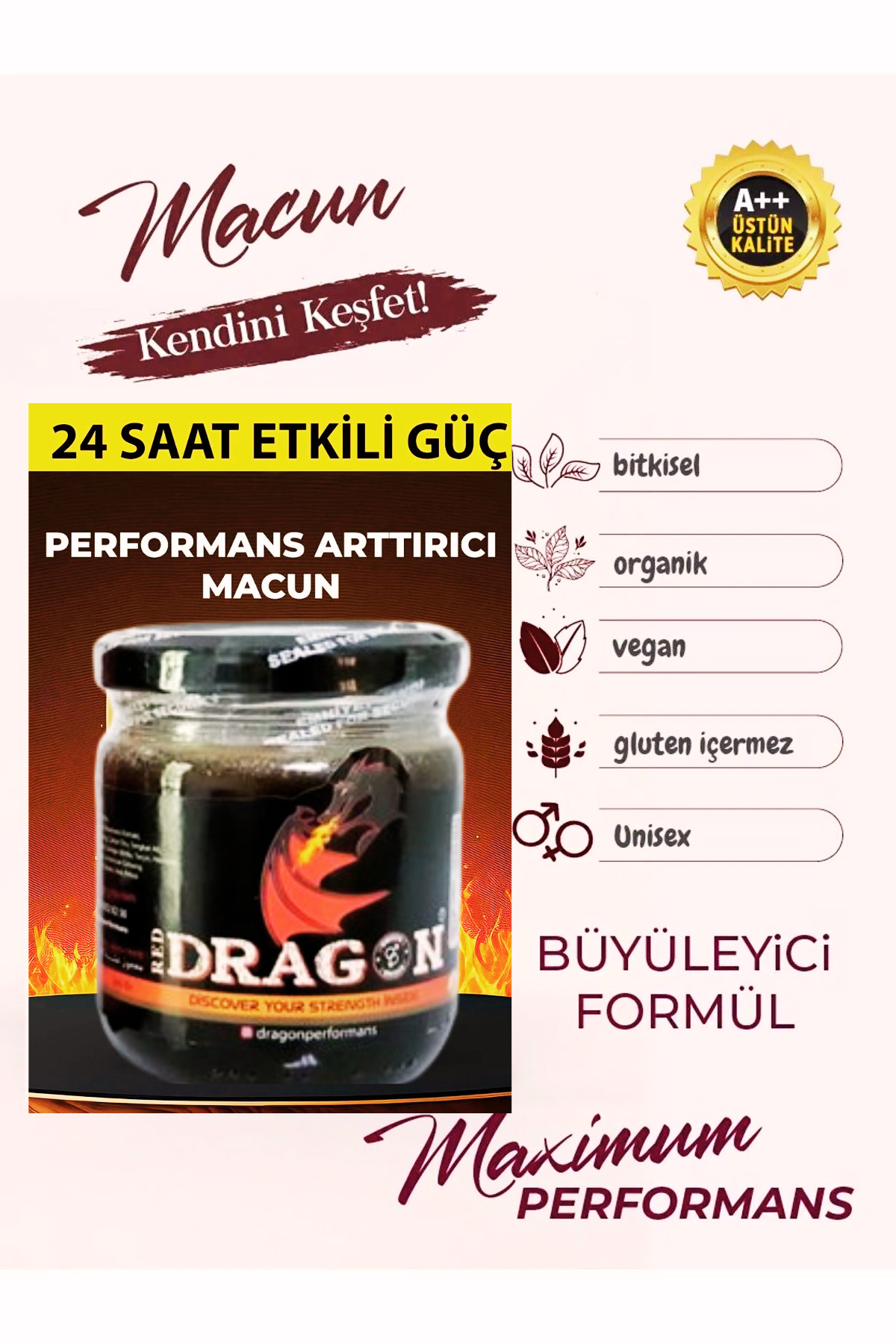 • Katki Maddesi Içermeyen 0 ÖZEL Dogal Bitki Özlerinin Karisimi Olan Dragon Marka BITKISEL KARISIMLI ÖZEL MACUN 18-75 Yas Arasi Erkekler ve Kadinlar Tarafindan Güvenle Kullanilmaktadir.