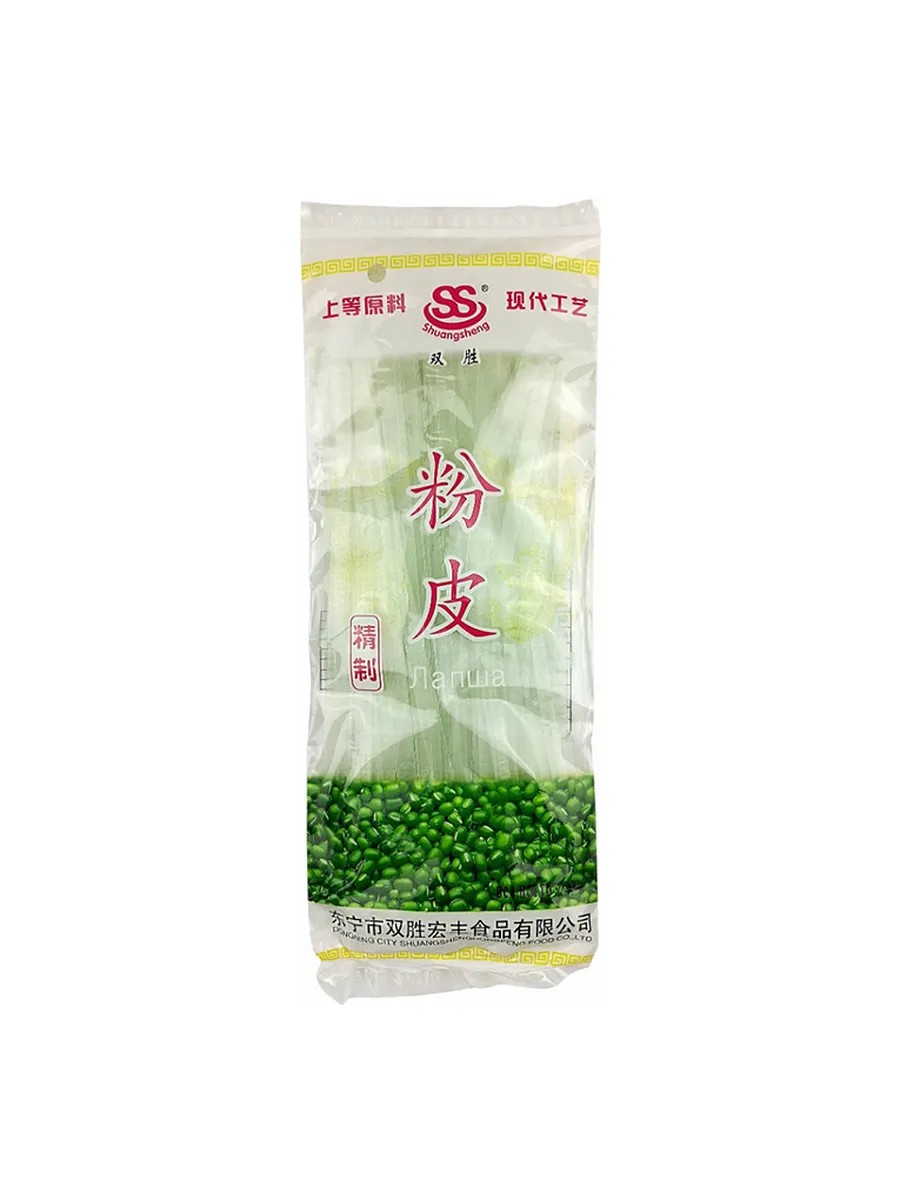 Крахмальная лапша из зеленых бобов - изысканное питательное и вкусное блюдо! Крахмальная лапша из зеленых бобов представляет собой вид китайской лапши изготовленной из бобов мунг (маша) которая также известна под названием «фасолевые нити». Она прозрачная плоская в форме полосок шириной 1см. Имеет упругую жевательную текстуру и особенный вкус. Лапша из зеленых бобов существенно разнообразит ваш ежедневный рацион. Крахмальная лапша - это приятная сытная лапша которая идеально подходит к овощным либо мясным блюдам. Будучи низкокалорийной крахмальная лапша из зеленых бобов идеальна для тех кто сидит на диете или считает калории. Кроме того эта лапша полезна тем кто хочет достигнуть долголетия.