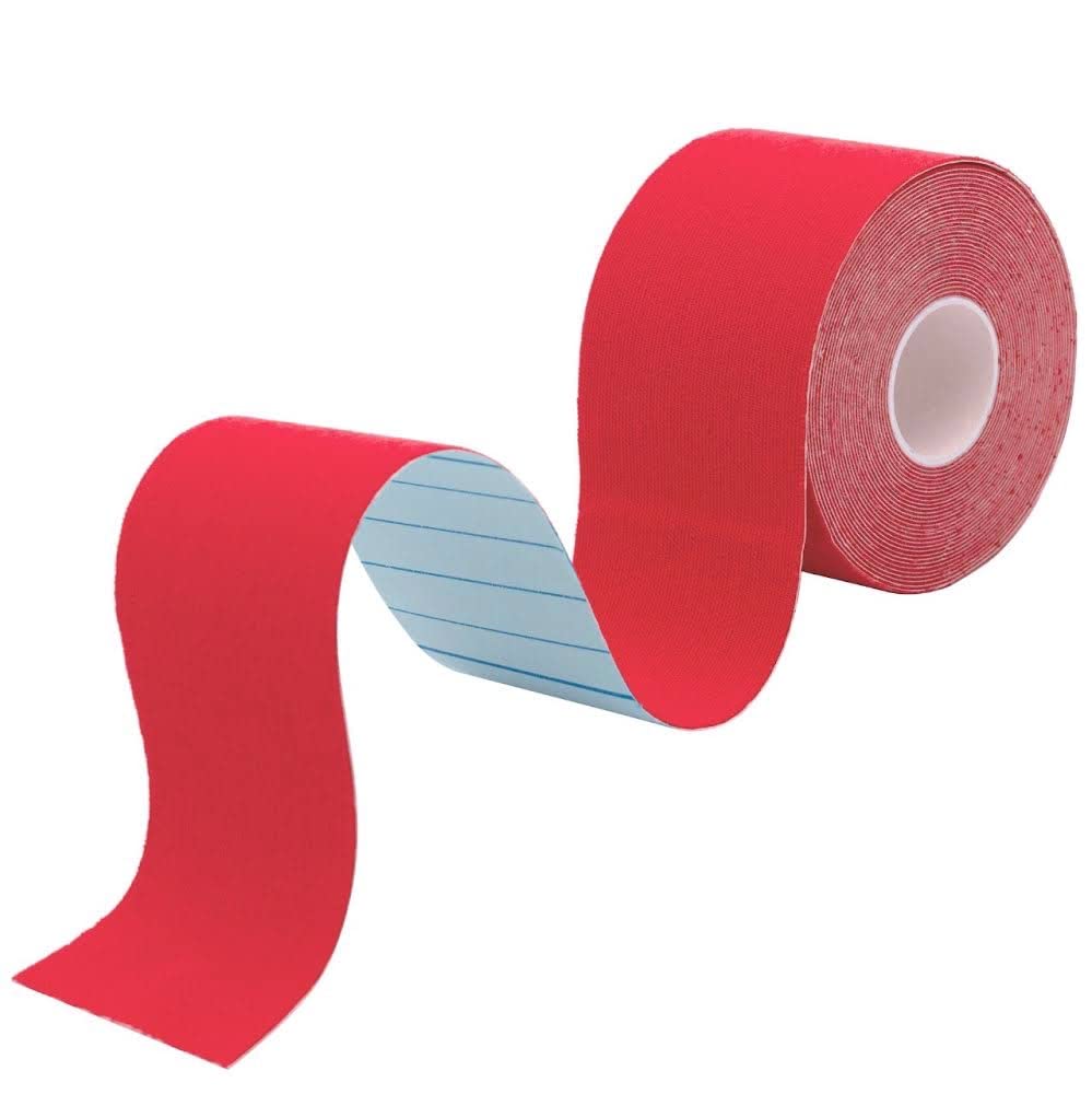 Red Kinesiology Tapes Waterproof - Latex Free Muscle & Physio Tape 5M Roll Strong Grip Medicated Glue Sports Tape Strapping for Ankle Knee & Shoulder-Includes E-Manual with Instructions
