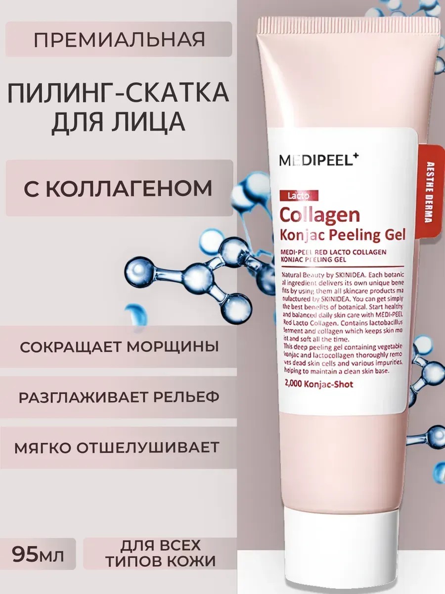 | Комплектация | корейский пилинг для лица Medi-Peel Red Lacto Collagen Konjac Peeling Gel 95мл |