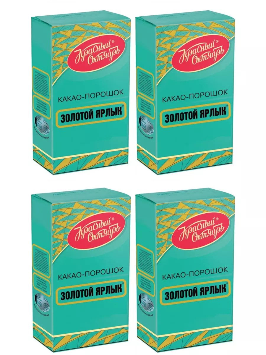 Какао Золотой ярлык картонная коробка 100 грамм 4штуки. Какао Золотой ярлык - это знаменитый продукт от фабрики "Красный Октябрь", который производится уже более века.