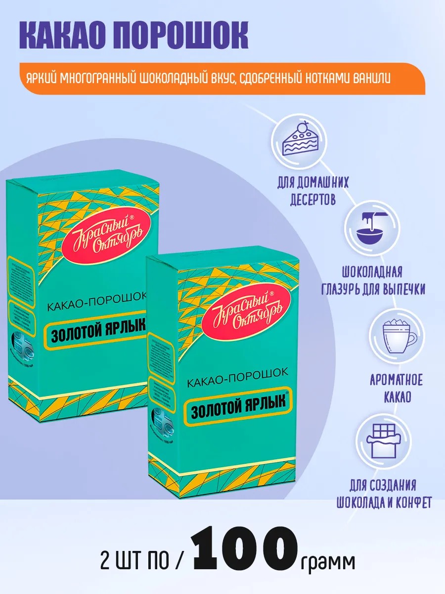 Какао-порошок “Золотой ярлык” от фабрики “Красный Октябрь” – это натуральный растворимый порошок без сахара, который станет отличным выбором для домашней выпечки и детских кулинарных экспериментов.