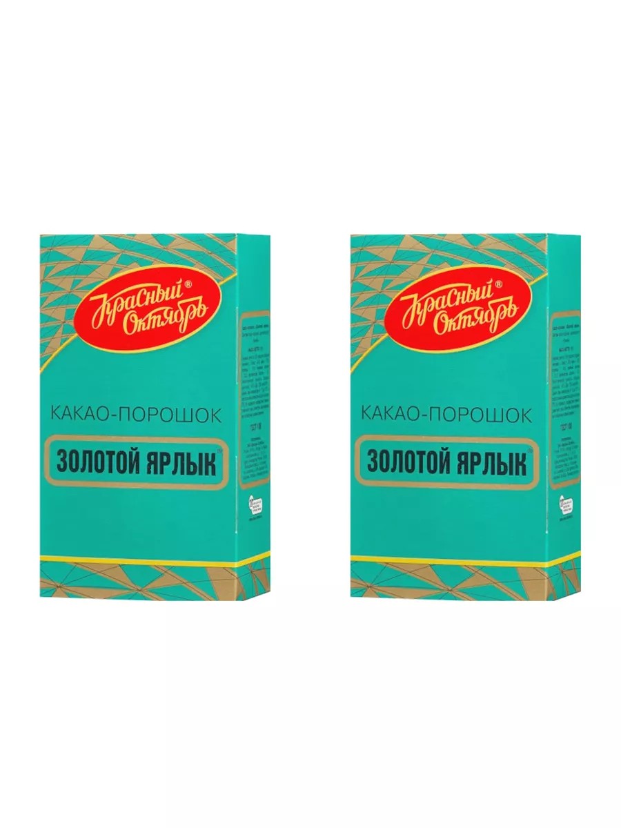 Красный Октябрь Золотой Ярлык Какао-порошок для варки, комплект из 2 штук по 100 гр. Какао Золотой ярлык порошок - это знакомый с детства продукт легендарной марки. Этот какао-порошок производится с 20-х годов XX века известной фабрикой Красный Октябрь, где он же применяется и в создании любимых шоколадок и конфет. Какао Золотой ярлык сочетает в себе вековые традиции высокого качества и неизменно насыщенного вкуса. Отсутствие в нем искусственных компонентов позволяет смело готовить напитки даже самым юным любителям какао. Сфера применения какао-порошка довольно широка. В домашних условиях его активно используют для приготовления классического какао, а также всевозможных десертов, в которых требуется добиться шоколадного вкуса, цвета и аромата. С ним можно сделать отличную кондитерскую глазурь. Актуален для использования в детских садах, школах, столовых и т. д. Чтобы приготовить ароматный какао, нужно смешать порошок с сахаром, залить необходимым количеством молока, размешать и довести до кипения. Употреблять его можно как в горячем виде, так и холодном, а также с добавлением мороженого.