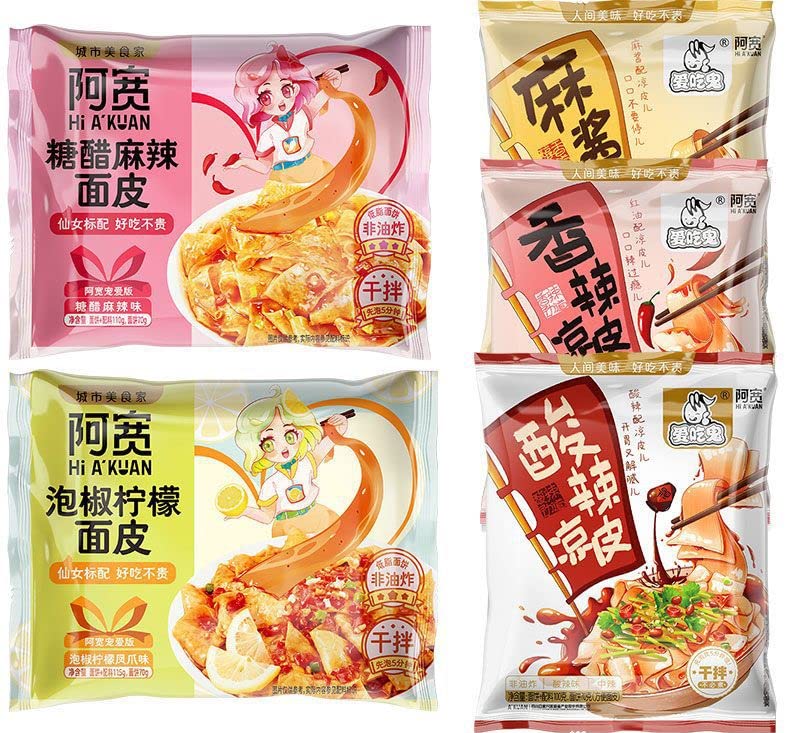 Baijia A-kuan Sichuan Broad Noodle - Hot and Sour Flavour 115g (Pack of 5) HALAL