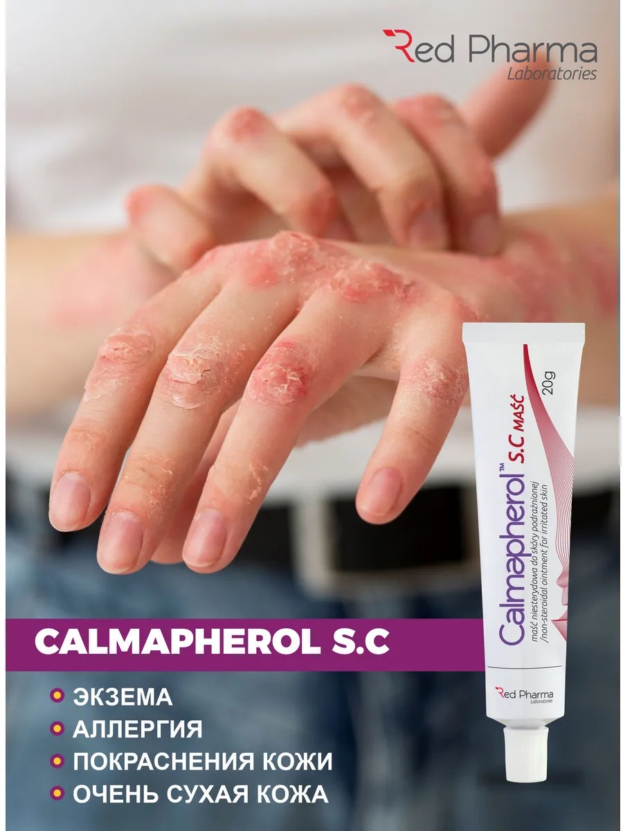 CALMAPHEROL S.C мазь - нестероидная мазь для восстановления липидного барьера кожи. Крем регенерирует кожу, убирает раздражения, покраснения, зуд, шелушения, аллергию. Calmapherol SC мазь используется при воспалениях кожи, диатез, псориазе, атопическом дерматите, контактном дерматите, экземе, при сезонной аллергии, ожогах, эритеме.