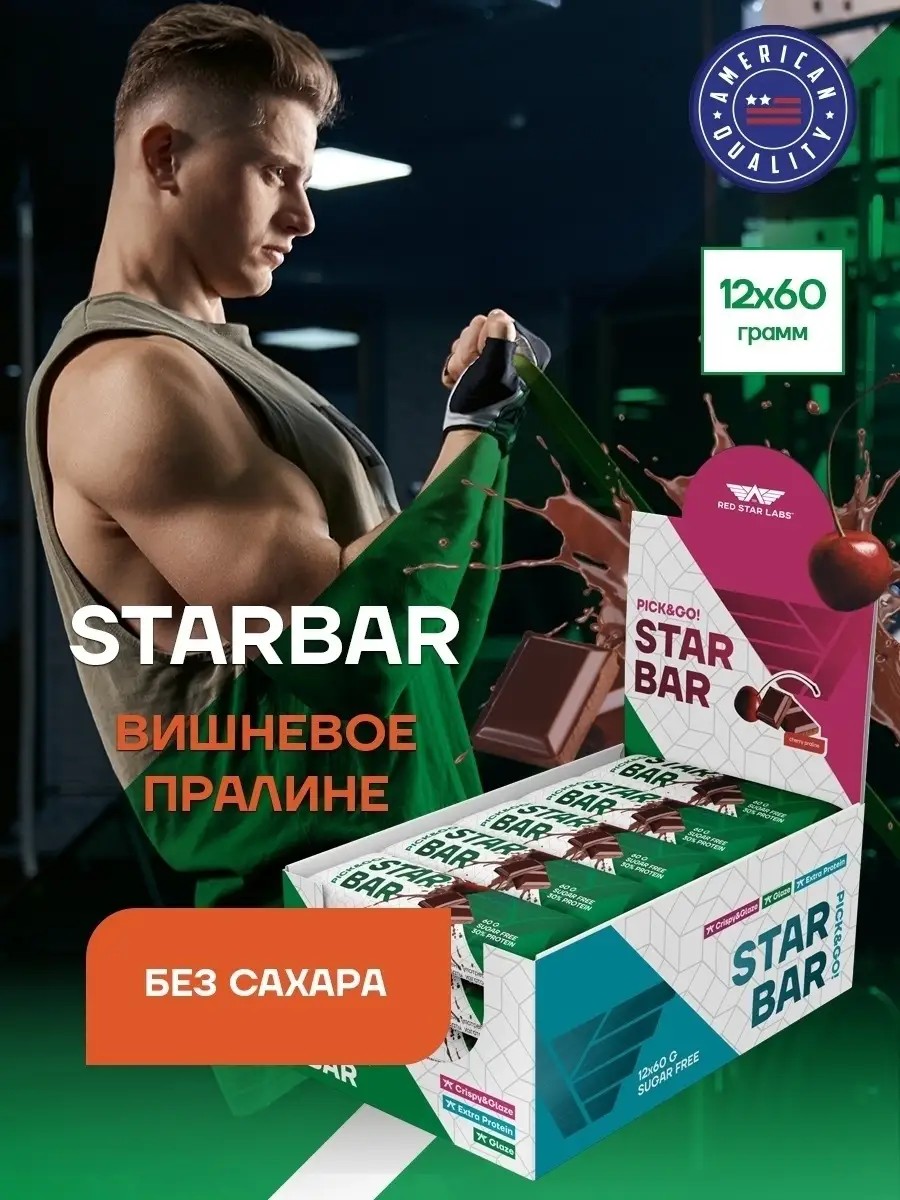Батончики без сазхара STARBAR Glaze, 12 штук по 60 г