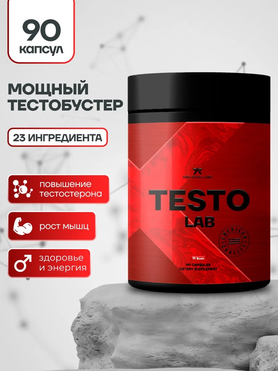 Тестостерон Testo Lab от Red Star Labs- это укрепляющее и восстанавливающее средство. Активные компоненты тестобустера улучшают производство гормона мозжечком, задействованного в синтезе тестостерона. Тестостерон - главный фактор анаболизма мышечной ткани и увеличения энергии. Приём Тестолаба по клиническим данным также улучшает настроение, придаёт уверенность в себе, уменьшает утомляемость и снижает уровень холестерина в крови.