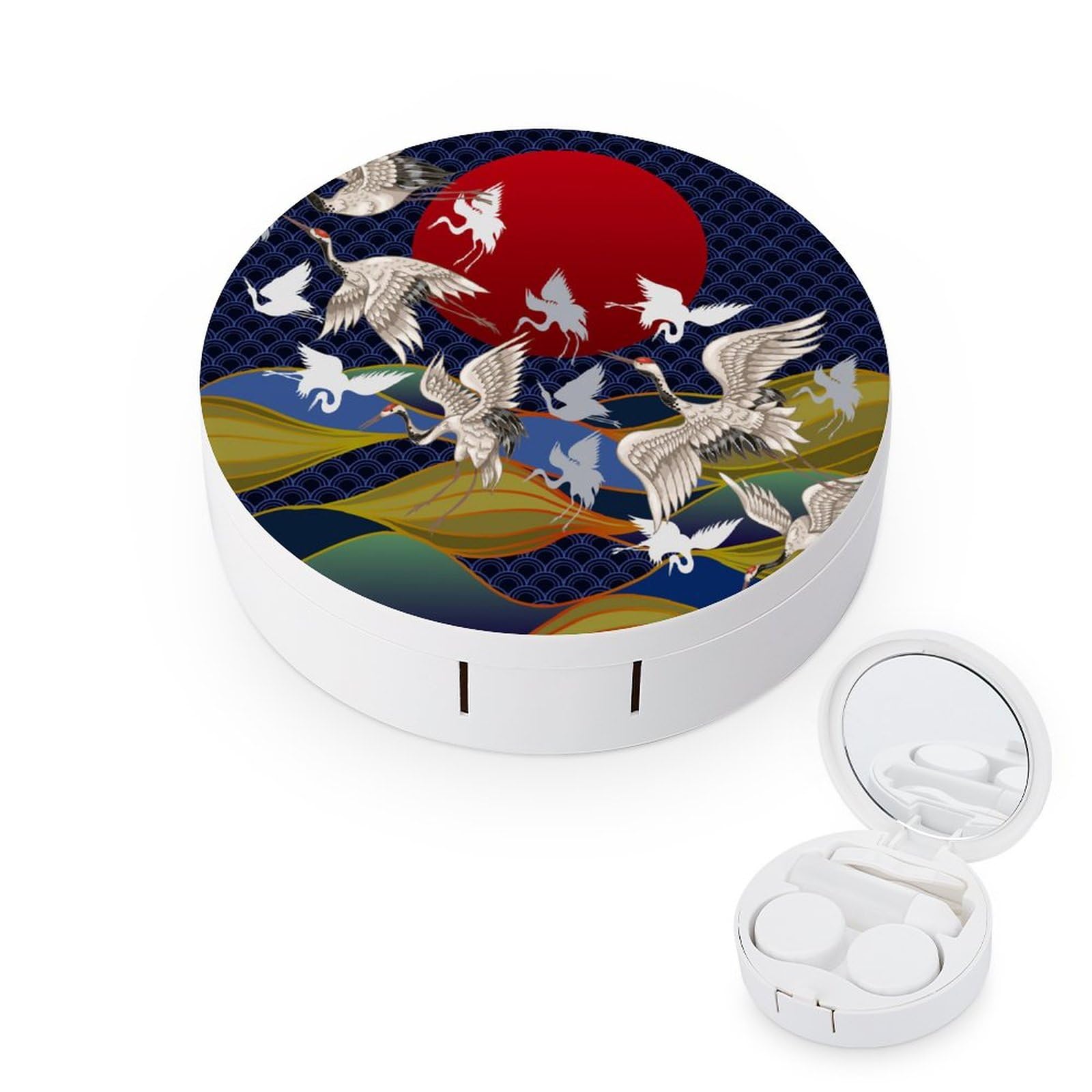 Red Sun Japanese Flying Crane Contact Lens Case Travel Portable Travel Contact Lens Box with Mirror