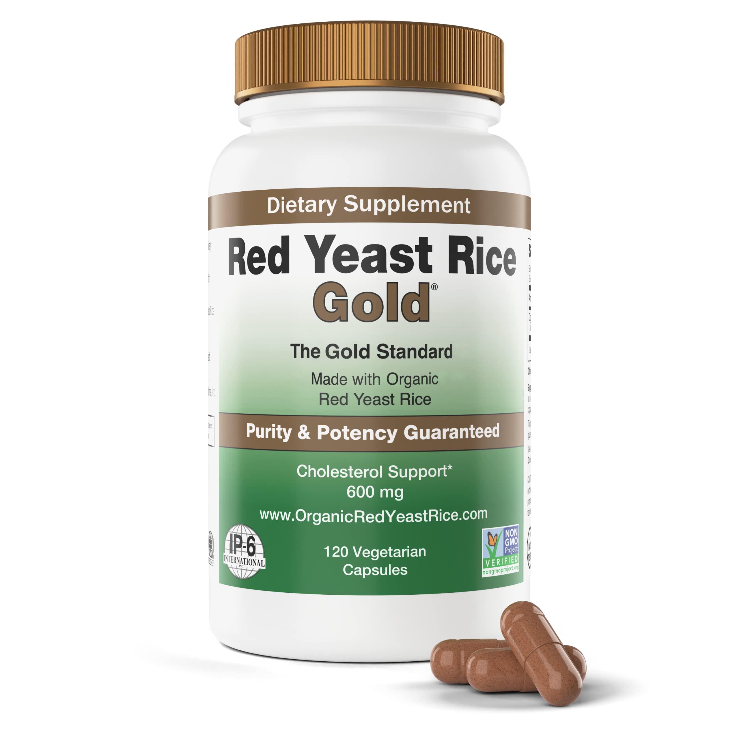 Red Yeast Rice Gold Made with 600 mg Organic Red Yeast Rice - IP6 International - 120 Vegetarian Capsules