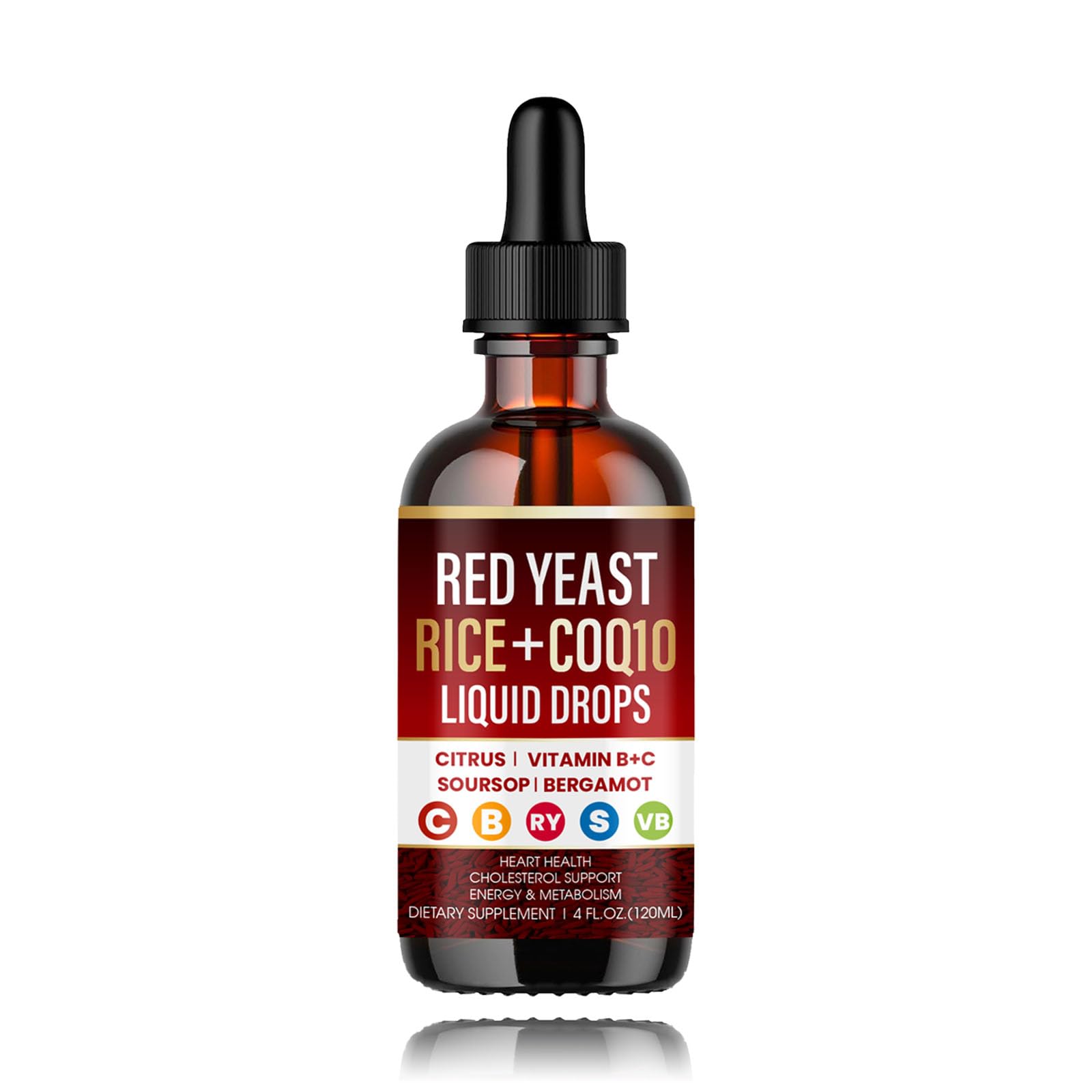 Red Yeast Rice with Coq10 Liquid Drops Red Rice Yeast for Cholesterol with Citrus Bergamot Immune & Heart Support - 120ML (1)