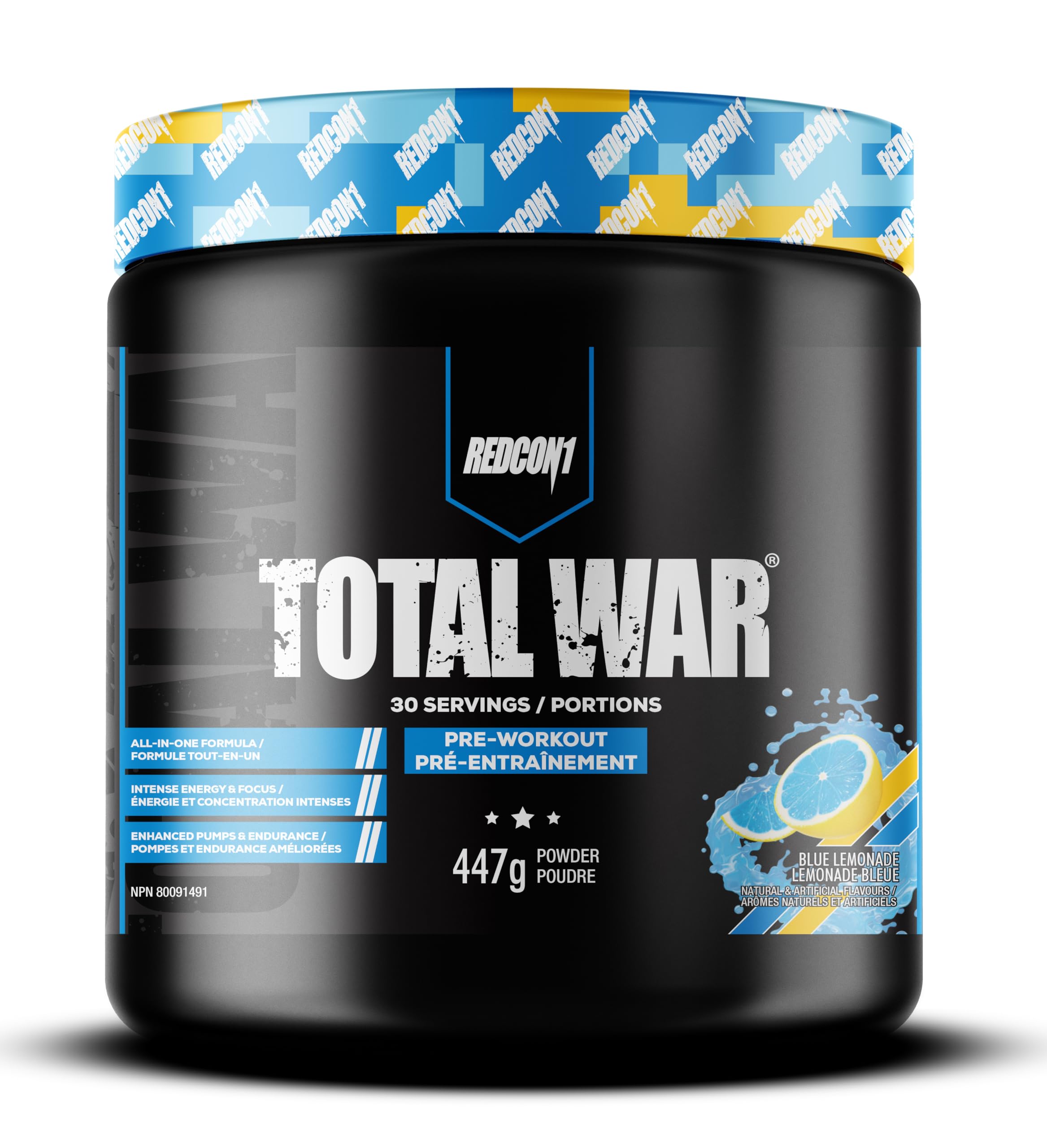 Train and compete with lights out intensity and pre workout energy. REDCON1's Total War pre-workout for men is what every really good pre workout wishes it was, packing more power per serving than anything in its class. Whether you train before work, school, middle of the day, or later in the evening, REDCON1's Total War pre-workout powder has the ability to come through every time. Formulated with premium ingredients, this caffeine pre workout with green tea leaf extract, beta alanine powder amino acids supplement, citrulline powder, and juniper extract provides you with unstoppable power to help you dominate even the most challenging gym sessions. Everyone can now have access to an elite level preworkout for women workout supplement for men without breaking the bank or sacrificing the pump for low-quality ingredients. REDCON1's Total War pre workout supplements without creatine is not for the faint of heart, but for the serious athlete or gym goer who expects to perform at the highest level of readiness when called upon.All-In-One Workout Supplements - Total War is a powerful combination of stimulants and focus factors along with N.O. compounds making it your go to taurine powder. 30 clinically dosed servings per container for cardio intense days, this preworkout will have you energized for hours. Noise Worthy Flavors - Not for the faint of heart, our pre workout powder for women men packs a flavorful punch you'll make excuses to use. Every scoop offers a delicious and refreshing flavor that never sacrifices your workout energy for taste. Professional Grade Formula - 6g of l citrulline malate 25mg of green tea extract 150mg of juniper helps boost nitric oxide levels to deliver nutrients and help increase blood flow. Our 'pump' effect keto pre workout is formulated with premium ingredients backed by science and made for athletic people of all skillsets. Unstoppable Power - This award-winning pre workout contains 250mg of active caffeine powder from 250mg of caffeine anhydrous, a dehydrated form that promotes alertness and wakefulness. Total War Preworkout for Men Women - Formulated with amino acid beta alanine to enhance muscular endurance and reduce exhaustion. Total War preworkout delivers rapid, fast-acting power focus for a transformative workout you didn't think was possible.