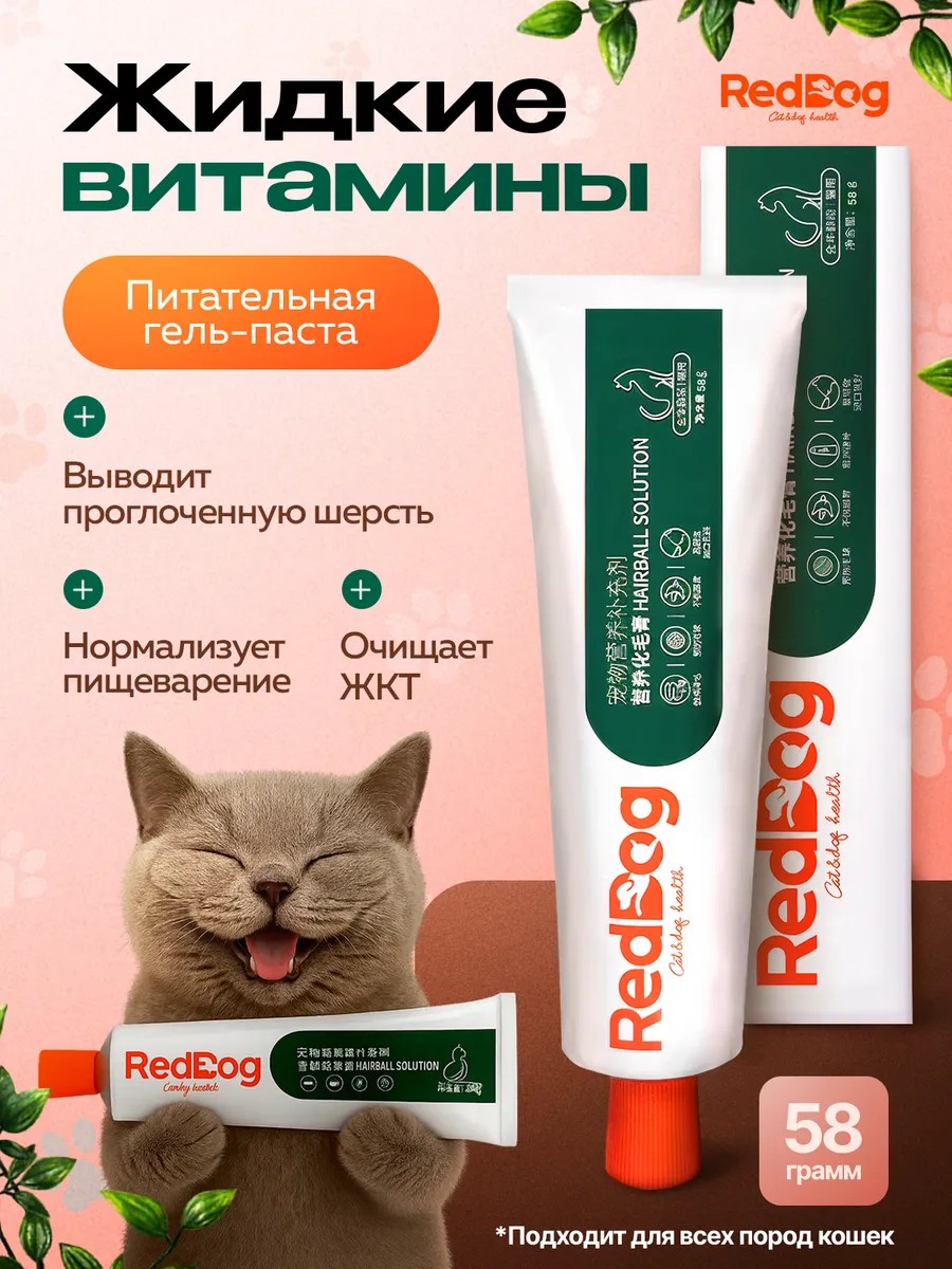 RedDog Hairball Solution — гель для выведения шерстяных комков у кошек. Обеспечивает мягкое очищение ЖКТ, способствует естественному выведению проглоченной шерсти, нормализует пищеварение. Идеально подходит в период линьки.