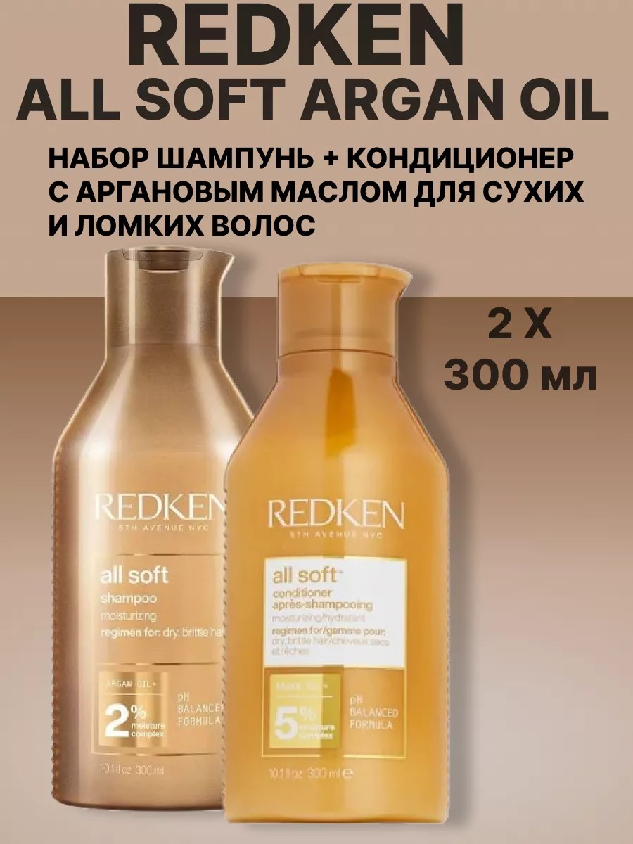 REDKEN Rеdken All Soft Набор Шампунь+кондиционер для волос2x300мл