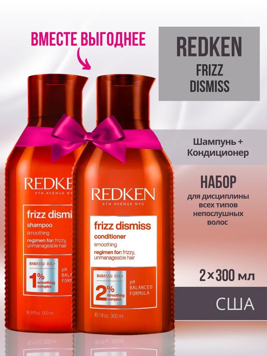 Redken Frizz Dismiss Set - Набор для гладкости и дисциплины волос (шампунь 300 мл, кондиционер 300 мл)