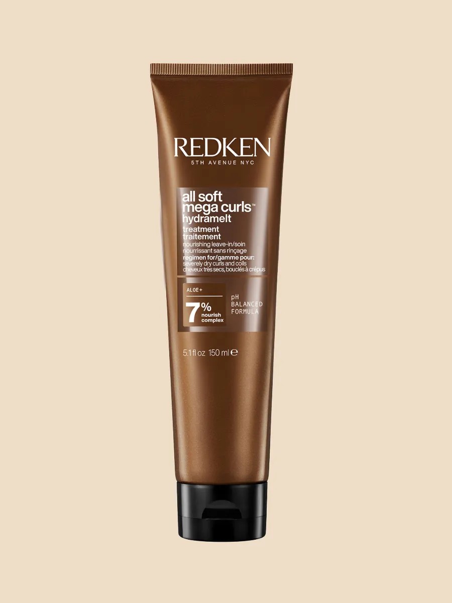 The unique Redken All Soft Mega Curls Hydramelt leave-in treatment provides daily gentle care for dry and brittle hair, instantly softening it after washing and creating a comfortable base for further styling.