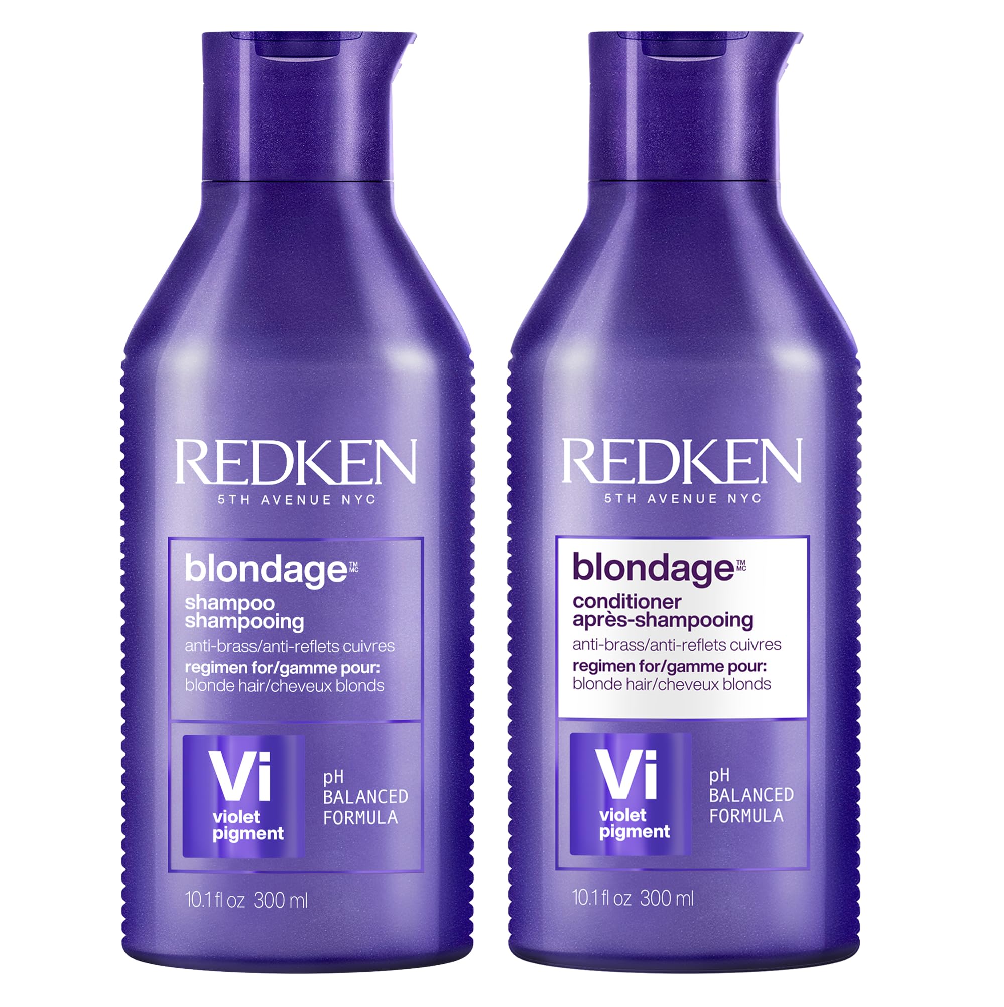 Redken Routine For Blonde and Bleached Hair Set of Shampoo and Conditioner Corrects and Neutralizes Yellow and Copper Tones With Triple Acid Protein Complex Blondage