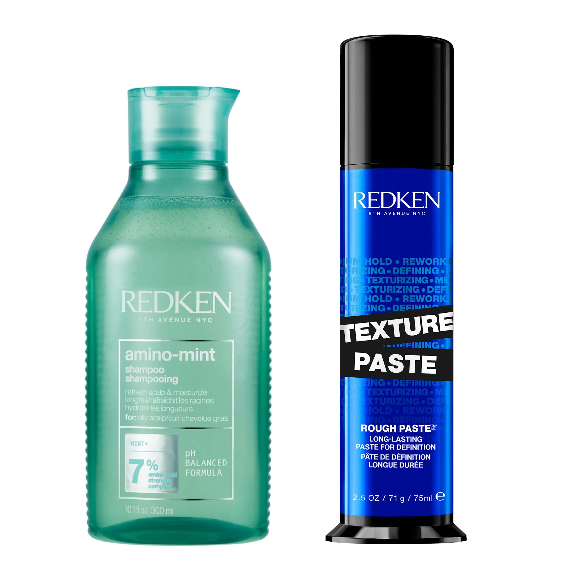 Redken, Routine Voor Mannen, Set van Shampoo en Styling Paste, Voor een Frisse Hoofdhuid en Textuur met Langdurige Medium Hold, Amino Mint, Texture Paste