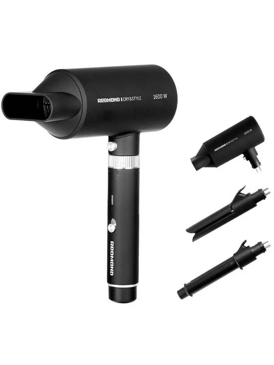 The Redmond RMS-4305 is a multifunctional styler that lets you create a wide variety of looks. It replaces three styling tools: a hair dryer, curling iron, and a straightener. Simply attach the appropriate attachment. DRYING: With 1600W of power, styling even long hair takes just minutes. Choose from two temperature and flow rates. A separate button activates the cold air blast to set your hairstyle. A concentrator is included for straightening strands with a brush. CURLING: The working surface has a diameter of 25 mm, allowing you to achieve natural curls. A curl clip with a convenient holder helps securely hold the curl and prevent it from slipping prematurely. STRAIGHTENING: The plates are equipped with a ceramic coating. It heats up quickly and evenly, ensuring the desired result in one pass without drying out the hair. Maximum temperature - 220C.