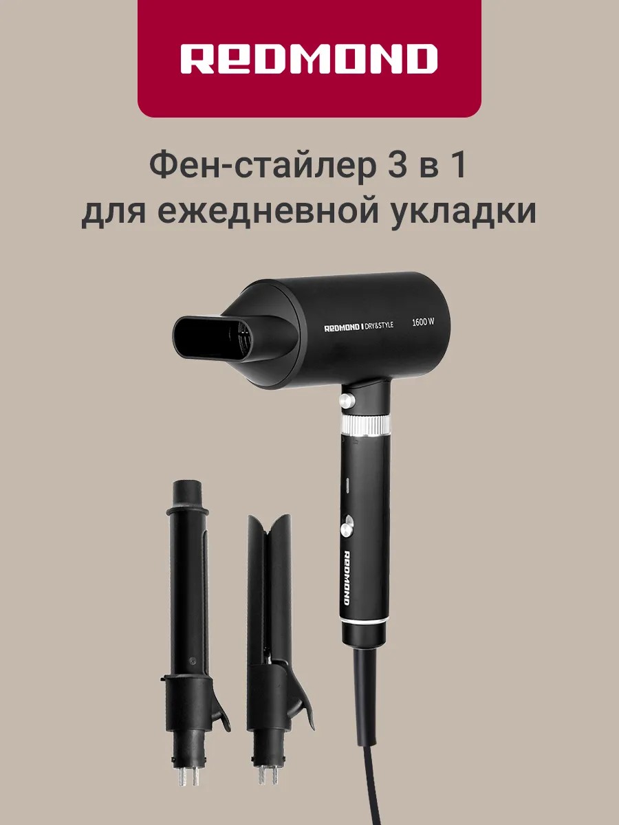 Фен-стайлер RMS-4305 — универсальный прибор 3 в 1 для сушки и укладки волос. Объемные локоны, гладкие пряди или игривые волны? С новинкой от REDMOND вам не придется выбирать и ограничивать свою фантазию! RMS-4305 легко превращается из фена в выпрямитель или щипцы для завивки — нужно только установить нужную насадку.