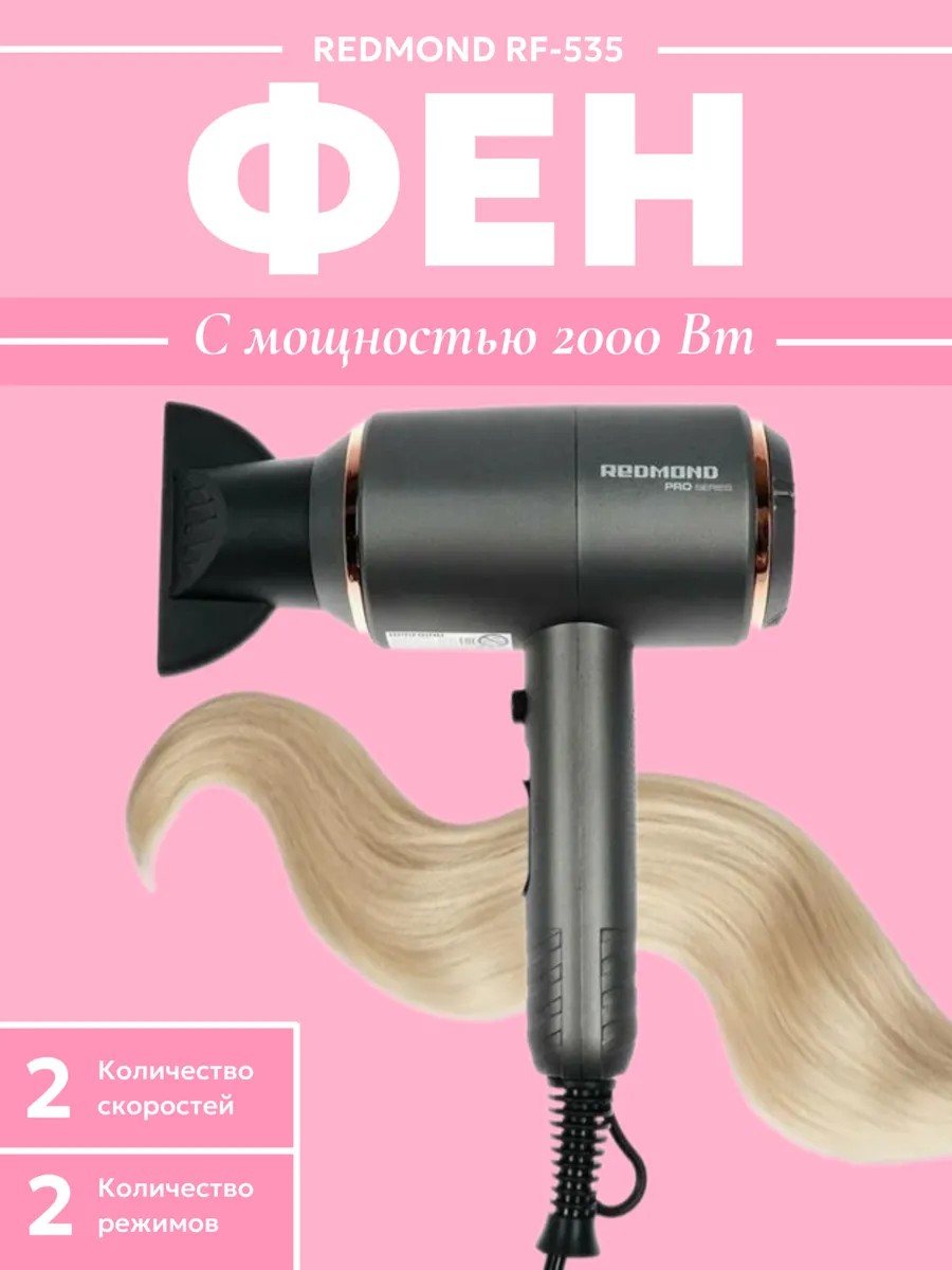 REDMOND Фен для волос RF-535, 2000 Вт, серый