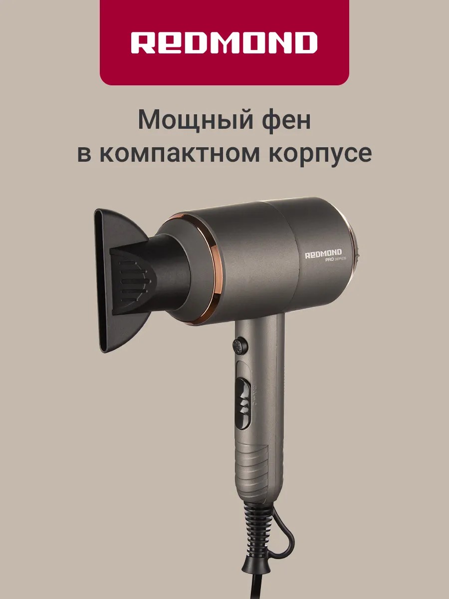 The REDMOND RF-535 travel hair dryer is a professional-grade device that will not only help you dry your hair quickly and gently, but also let you easily create perfect hairstyles every day!