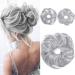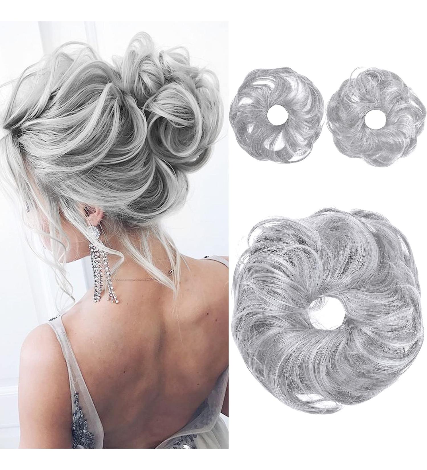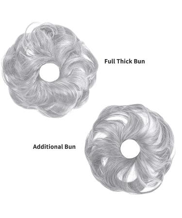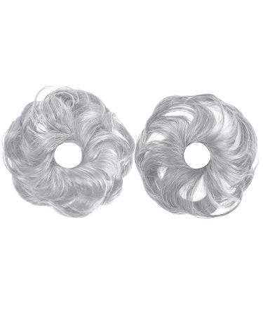 REECHO 2PCS Long Tousled Updo Hair Bun Extensions Messy Bun Hair Piece Hair Scrunchies Wraps Curly Wavy Ponytail Hairpieces Hair Accessories for Women Girls Silver Grey Plus (Pack of 2) Silver Grey