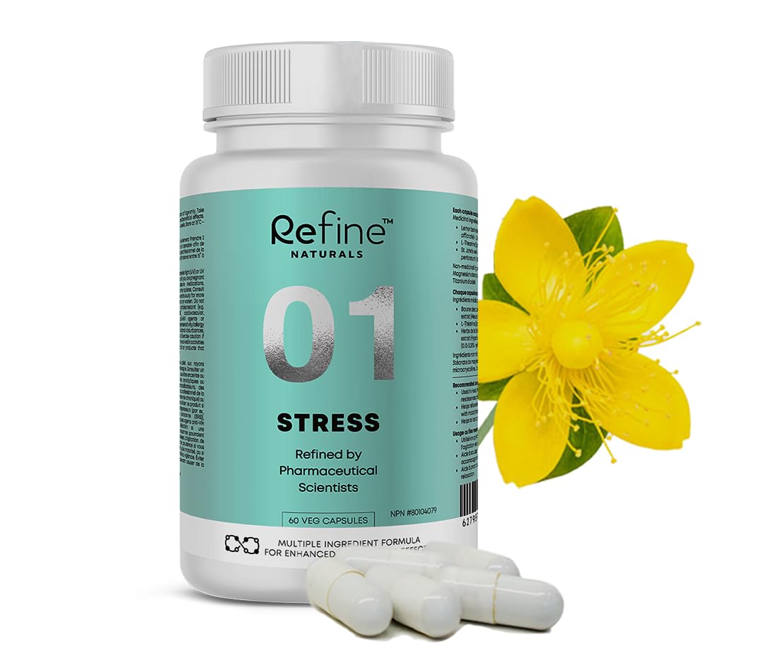 ✓ MADE IN CANADA, 100 NATURAL HERBALS, NON-GMO, GMP CERTIFIED VEGETARIAN CAPSULES – Refine Naturals' supplements are produced in a GMP certified facility, ensuring the highest quality. Our products are vegetarian, non-GMO, gluten-free, nut-free, sugar-free, and caffeine-free. Try Refine Naturals Stress Supplement to support your relaxation and well-being today!. ✓ NATURAL INGREDIENTS FOR YOUR WELL-BEING – Developed by a team of experts, our supplement uses scientifically-backed medicinal ingredients to support your mood and relaxation. Made according to Canadian health standards. ✓ MAINTAIN YOUR PRODUCTIVE DAY – Support your well-being and experience a calm, focused mind. Our supplement is designed to help you manage daily stressors effectively, so you can stay productive at work, school, or on-the-go. ✓ SUPPORT A SENSE OF CALM – Our combination of L-Theanine, Lemon Balm, and St John Wort Herbals supports balanced stress levels and a relaxed mood. With just 2 capsules a day, you can maintain focus and composure throughout your day. ✓ PROMOTE RELAXATION WELL-BEING – Feeling overwhelmed? Our blend of all-natural herbals is designed to support your relaxation, mental calmness, and overall mood. Enhance your productive lifestyle with our carefully crafted supplement.