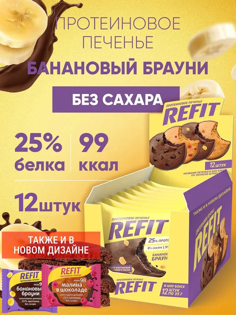 REFIT Протеиновое печенье "Банановый брауни" - это идеальный перекус для тех, кто следит за своим здоровьем и фигурой. Эти вкусные и полезные печеньки с насыщенным вкусом шоколада, брауни и банана станут отличным дополнением к вашему рациону, помогая вам достичь ваших целей в спорте и фитнесе. Каждая порция печенья содержит 9 грамм белка, что способствует росту и восстановлению мышц, а также всего 5 грамм углеводов и 4 грамма жиров, что делает его идеальным выбором для тех, кто следит за своим весом. REFIT Протеиновое печенье "Банановый брауни" не содержит сахара, что делает его еще более полезным и подходящим для тех, кто придерживается здорового образа жизни.
