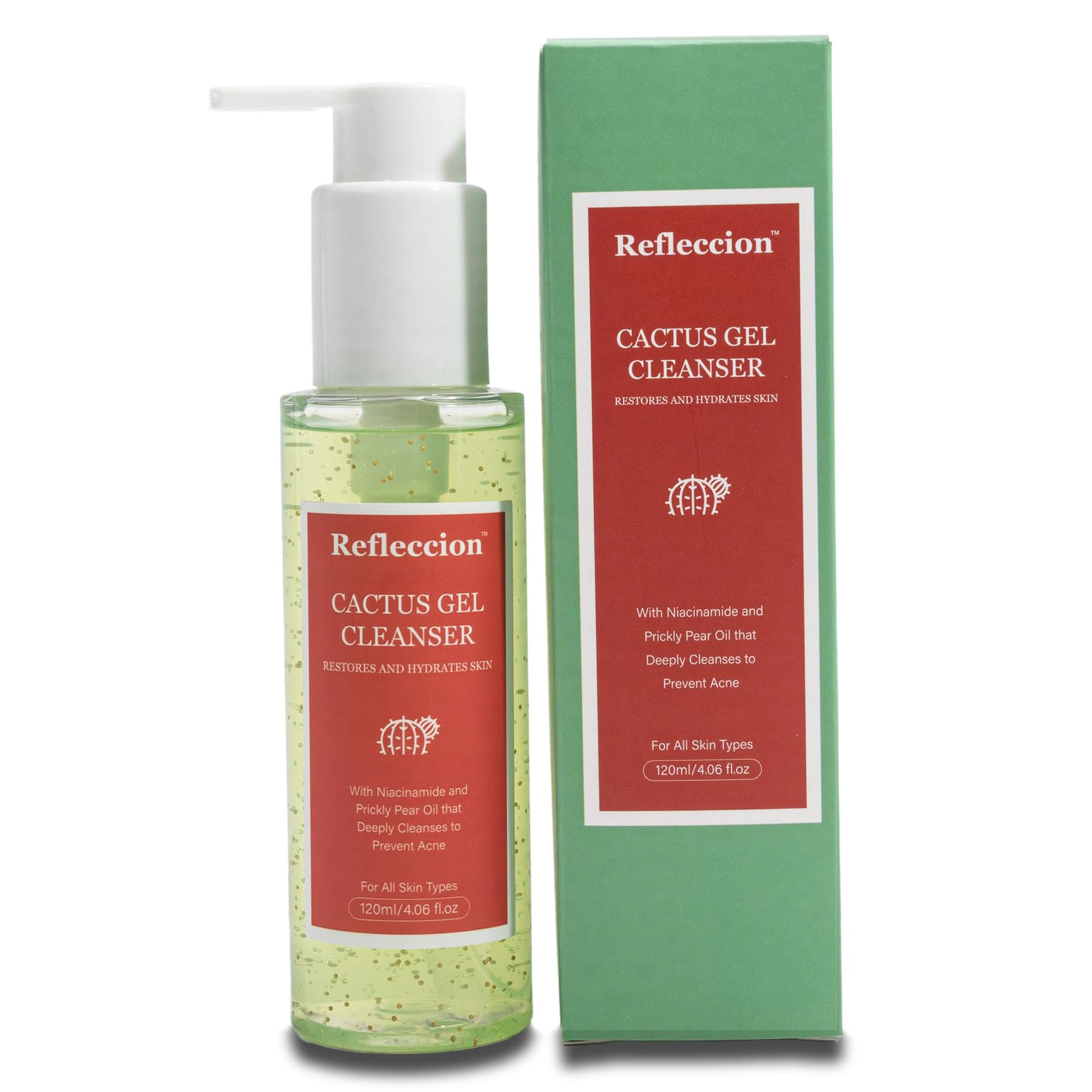 Refleccion Cactus Gel Facial Cleanser-Deeply Hydrating and Nourishing For Sensitive Skin Types-With Hydrating Prickly Pear Oil & Niacinamide-Anti Aging Formula Fights Acne-Tightens Pores.