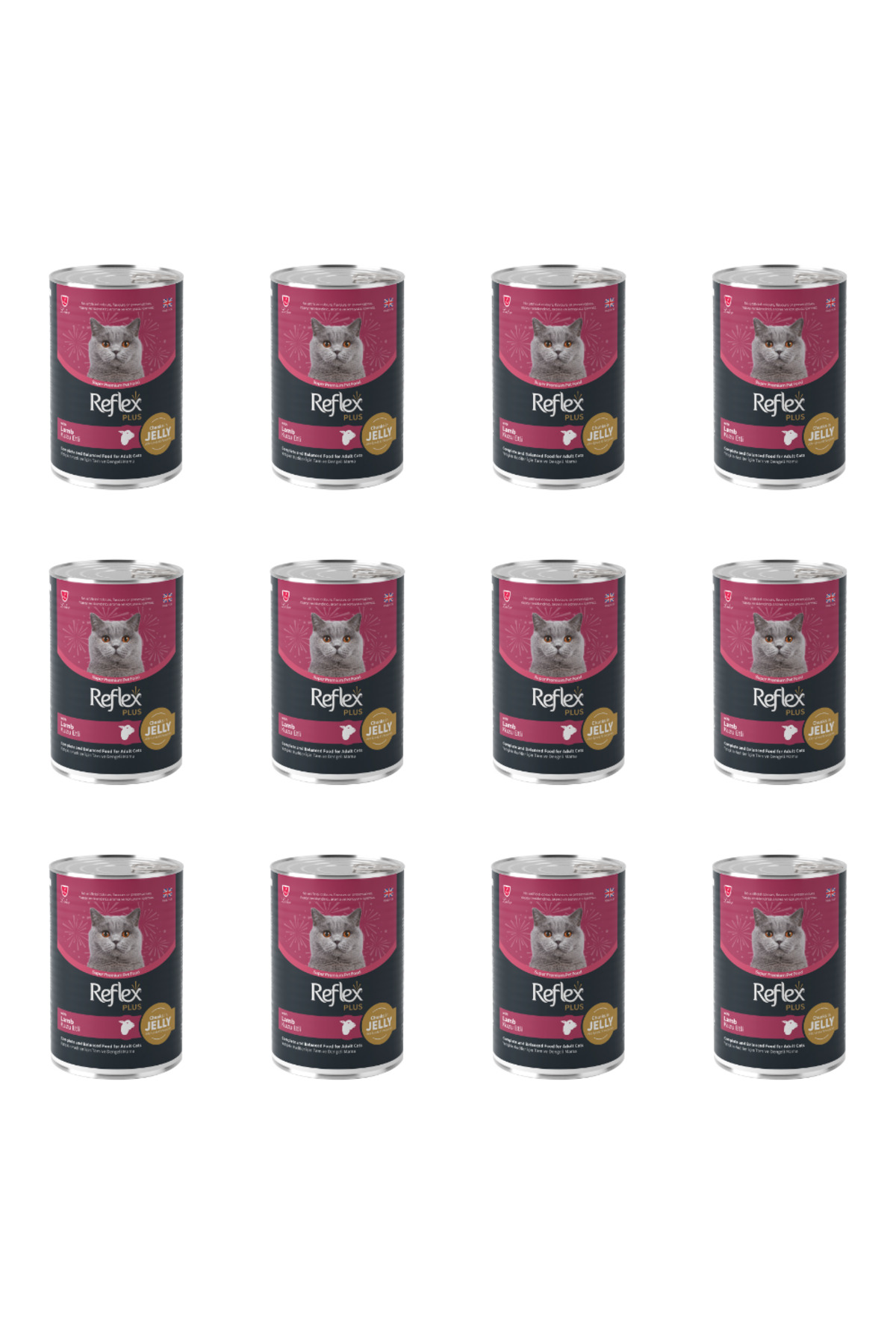 Reflex Plus Canned Lamb Meat Adult Cat Food in Jelly 400 Gr (12 Pieces)