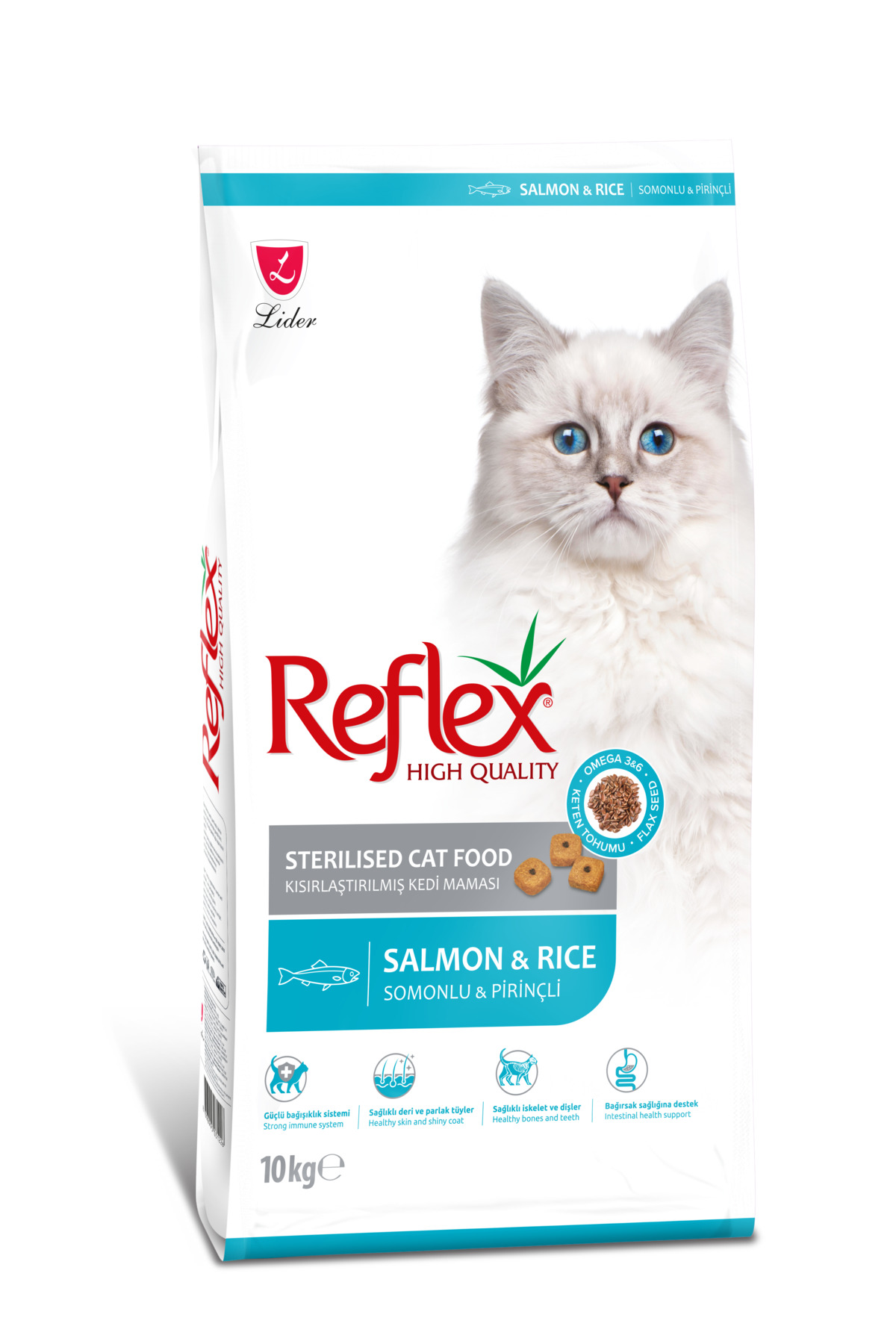 Reflex Salmon and Rice Sterilized Adult Cat Food has a special formulation to help sterilized cats live a healthy and happy life. Salmon is selected as the primary protein source and is prepared to provide a complete and balanced nutrition opportunity to meet the daily nutritional needs of sterilized cats.