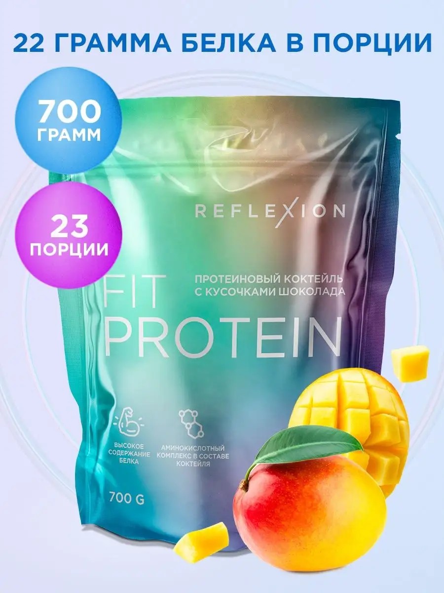Протеиновый коктейль с кусочками шоколада от Reflexion – высокобелковая смесь с ярким насыщенным вкусом отлично подойдёт приверженцам здорового питания, а также спортсменам для восстановления сил и энергии в процессе активных тренировок. Протеин Fit Protein отлично сбалансирован и хорошо усваивается организмом. Он способствует долгому насыщению, препятствует катаболизму и ускоряет набор мышечной массы. Благодаря гармоничному вкусу и хорошей растворимости, протеиновая смесь шоколадная с кусочками шоколада идеальна в качестве быстрого перекуса.