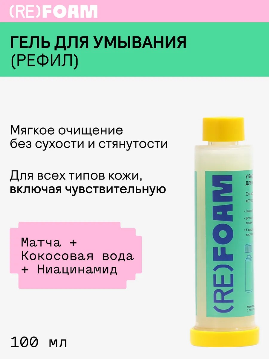 Рефил геля для умывания от (RE)FOAM бережно очищает кожу лица, не вызывая раздражения даже у самой чувствительной кожи. Он подходит для подростков (мальчиков и девочек), а также для взрослых — женщин и мужчин. Универсальное средство ежедневного ухода, которое легко станет любимой умывалкой всей семьи.