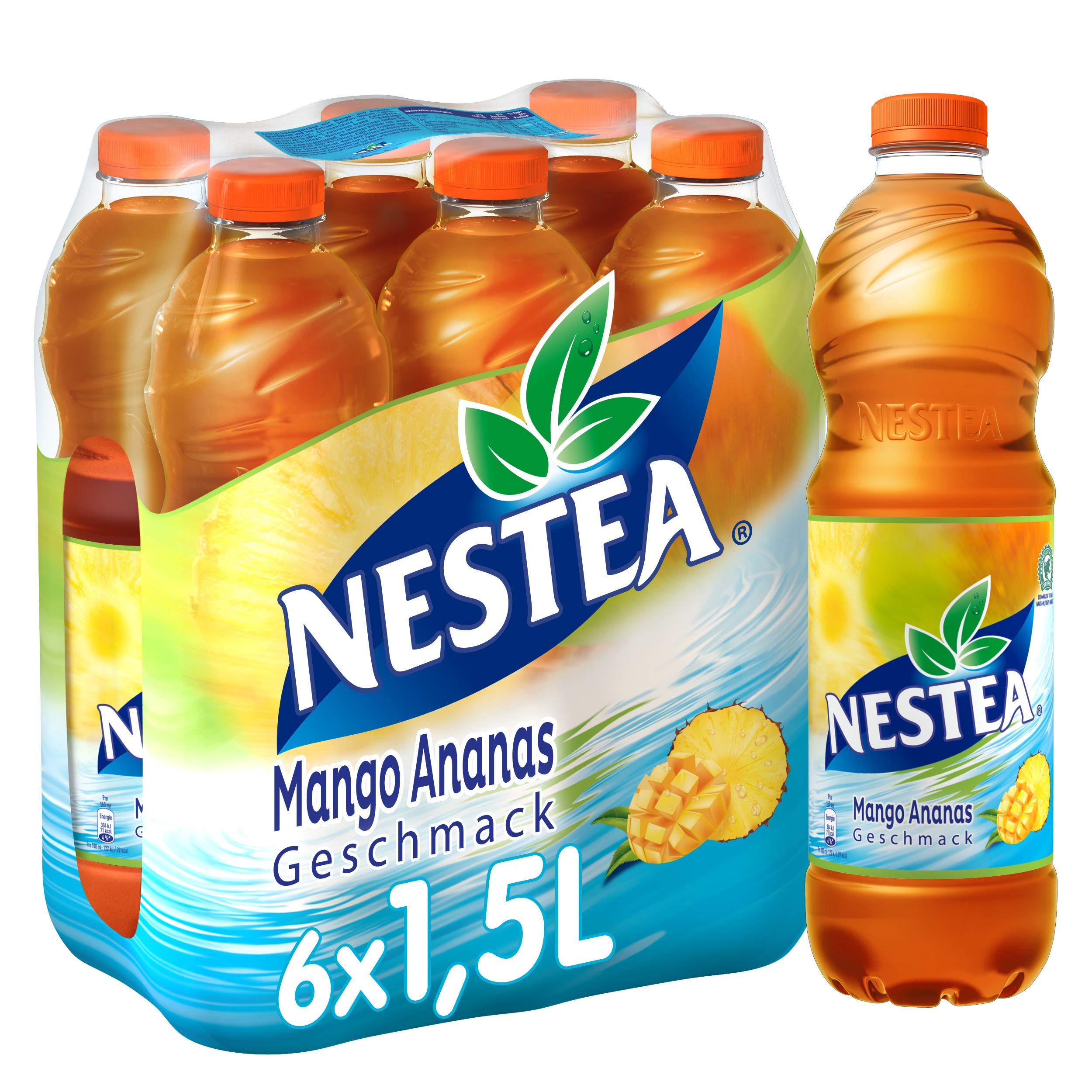 Refreshment like on holiday – Nestea mango pineapple. The delicious Exote Nestea Mango pineapple is the absolute favorite drink for in between. The mango-pineapple flavor ensures a good mood and provides pleasant relaxation like on holiday. Served on ice or fresh from the refrigerator, NESTEA Mango Pineapple offers sunny refreshment – no matter where, wherever. Convincing quality. The high-quality tea leaves come from the Nilgiri region of India and are grown and harvested there in Rainforest Alliance certified plantations, for pure taste with a clear conscience. Be convinced by old acquaintances and exotic new ones. Nestea is produced without colorings and preservatives, but offers full taste through natural aromas and ingredients. Large choice, full of flavour. NESTEA promises intensive refreshment in 5 flavors: peach Lemon forest fruit Mango pineapple White peach without sugar. NESTEA is available in sizes 0.5 l and 1.5 l. A €0.25 deposit is added per bottle. INGREDIENTS water, sugar, acidulant: citric acid and malic acid, tea extract (0.08 ), natural flavouring INSTRUCTIONS FOR USE Consume quickly after opening SAFETY WARNING Store dry and protect from sunlight See moreNESTEA Mango Ananas, verfrissend met volle smaak, hoogwaardige thee en natuurlijke aroma's (wegwerp, 6 x 1,5 l) Verfrissing zoals op vakantie – Nestea mango ananas. De heerlijke Exote Nestea Mango ananas is de absolute favoriete drank voor tussendoor. De mango-anassmaak zorgt voor een goed humeur en zorgt voor weldadige ontspanning zoals op vakantie. Op ijs geserveerd of vers uit de koelkast biedt NESTEA Mango ananas een zonnige verfrissing – ongeacht wan, waar dan ook. Overtuigende kwaliteit. De kwalitatief hoogwaardige theebladeren komen uit de Indiase regio Nilgiri en worden daar in Rainforest Alliance gecertificeerde plantages geteeld en geoogst, voor pure smaak met een zuiver geweten. Laat je overtuigen door oude kennissen en exotisch nieuw. Nestea komt zonder kleur- en conserveringsmiddelen uit, maar biedt daartoe volle smaak door natuurlijke aroma's en ingrediënten. Grote keuze, vol smaak. NESTEA belooft intensieve verfrissing in 5 smaken: perzik Citroen bosvrucht Mango-ananas Witte perzik zonder suiker. NESTEA is verkrijgbaar in de maten 0,5 l en 1,5 l. Per fles wordt € 0,25 aanbetaling toegevoegd. INGREDIËNTEN water, suiker, zuurmiddel: citroenzuur en appelzuur, thee-extract (0,08 ), natuurlijk aroma GEBRUIKSAANWIJZING Na het openen snel consumeren VEILIGHEIDSWAARSCHUWING Droog bewaren en tegen zonlicht beschermen Meer bekijken