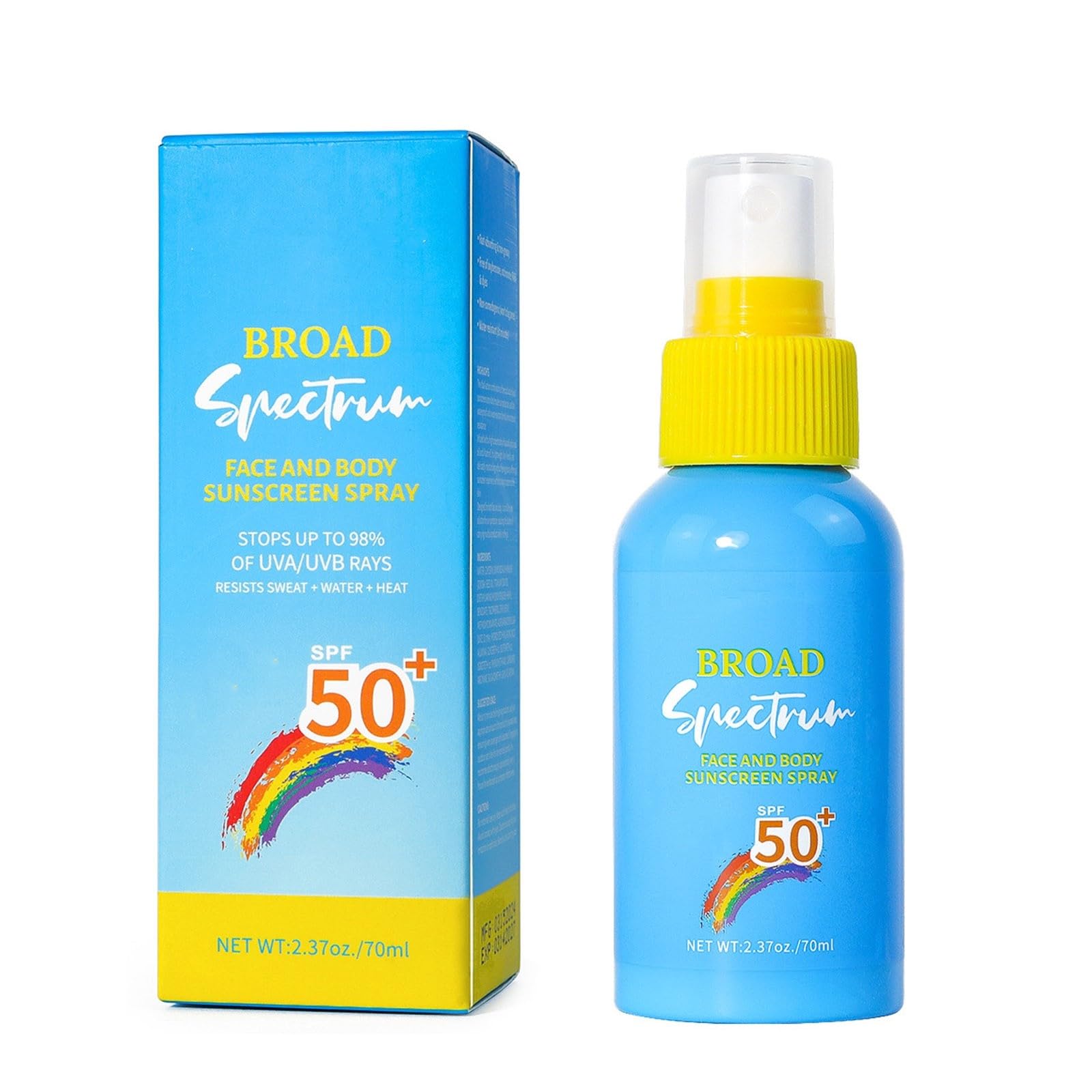 How To Use: Spray directly on skin, covering all areas, and rub in until absorbed. Apply 15 minutes before sun. Reapply after 80 minutes of swimming, and immediately after a towel dry. Long-lasting Protection: Sunscreen Mist for face and body is waterproof, sweat-resistant,easy to apply,leaves skin with a subtly dewy, hydrated finish. Portable To Carry: This sunscreen spray is perfect for outdoor use and is easy to carry so you can spray it anytime. Powerful Sun Protection: Facial sunscreen mist with spf 50 is perfect for daily use on the face and body, providing powerful sun protection. Refreshing Sun Cream: Designed with a mist spray for easy application and SPF touch ups on-the-go. The formula is so lightweight it glides over makeup, won't break you out, or leave you with a greasy shine.