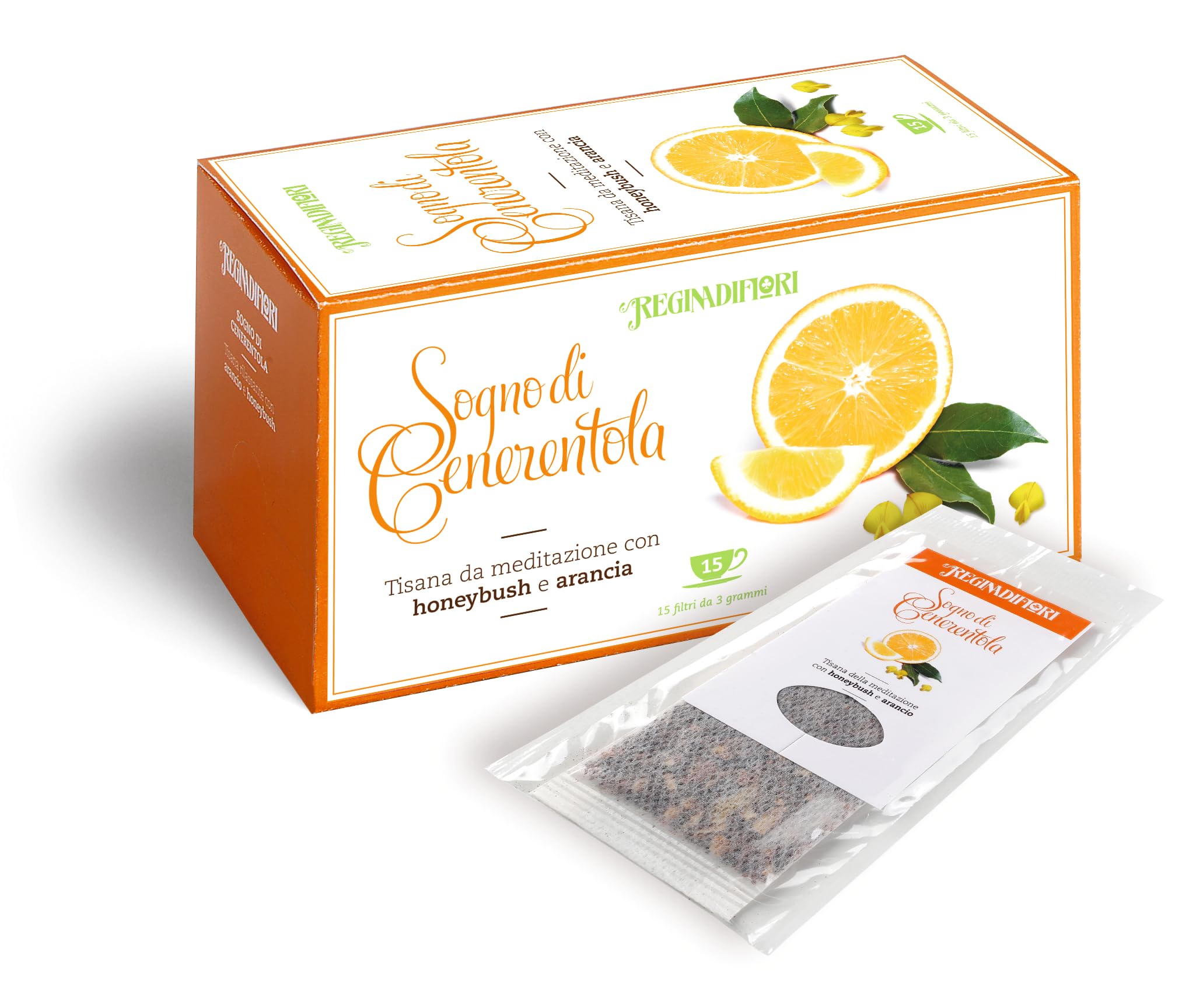 Regina di Fiori - Rêve de Cendrillon. Tisane avec Honeybush et Orange. 4 boîtes de 15 filtres de 3g (60 filtres totaux)
