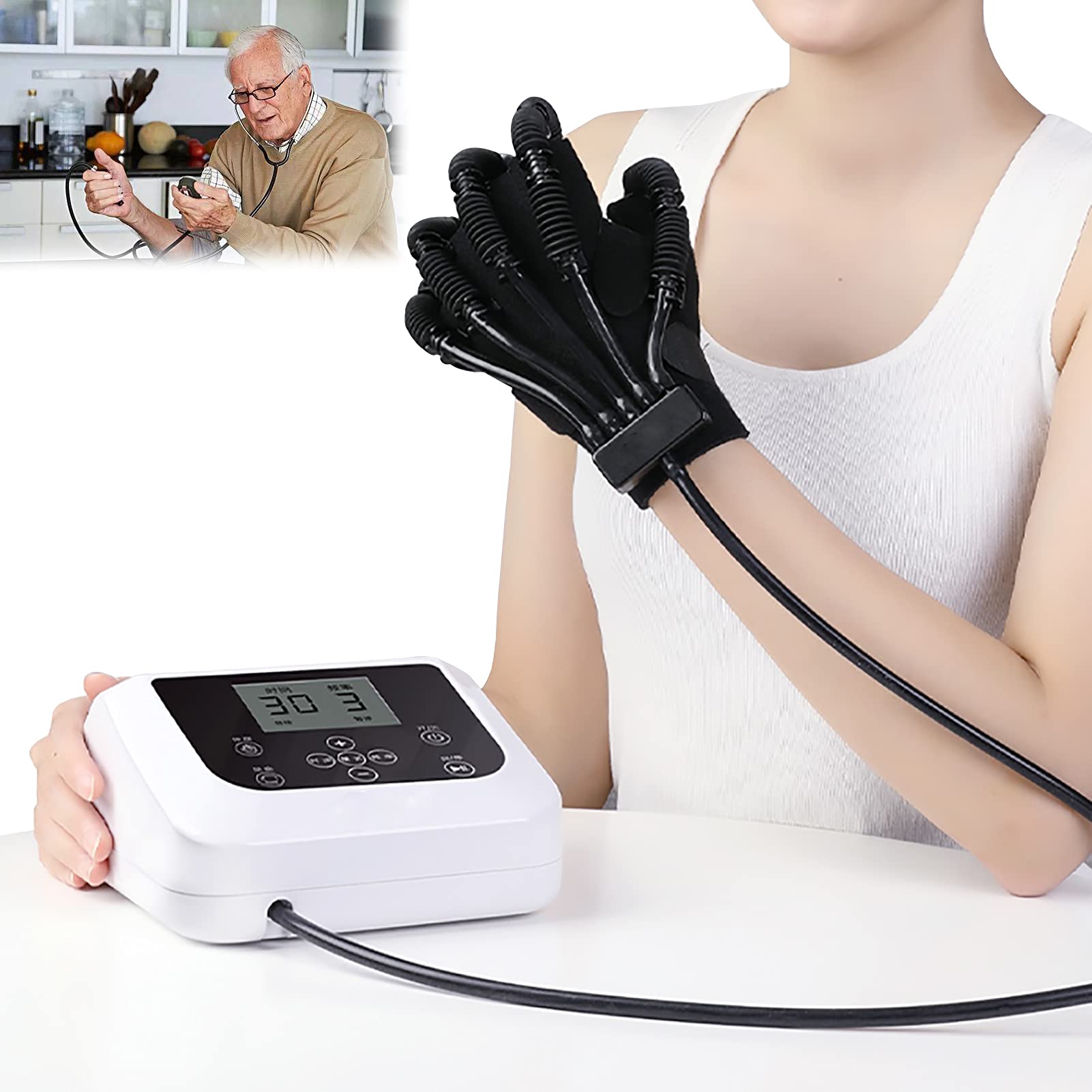 Description. - Patients with assistive functions can rebuild hand functions through exercise, and then restore the self-care ability of daily life. - Polymer soft gloves, a variety of flexible polymer materials, three-dimensional cutting, suitable for human hand, flexible air hand drive, simple and convenient. - Small and convenient design, wearable, independent operation and maintenance. - Easy to operate, simple and efficient rotation control. Application of robotic rehabilitation gloves. Crush injuries and other hand injuries. Torn tendons and/or ligaments and other tendon injuries. Peripheral nerve and other neurological disorders. Fractures and dislocations. Arthritis or tendonitis Carpal tunnel syndrome Dupuytren's contracture. Post-stroke rehabilitation, etc. Specification Product name: Finger rehabilitation massage training equipment for stroke hemiplegia. Weight: 1kg Function: Finger rehabilitation training, contracture stiffness correction, wrist joint correction