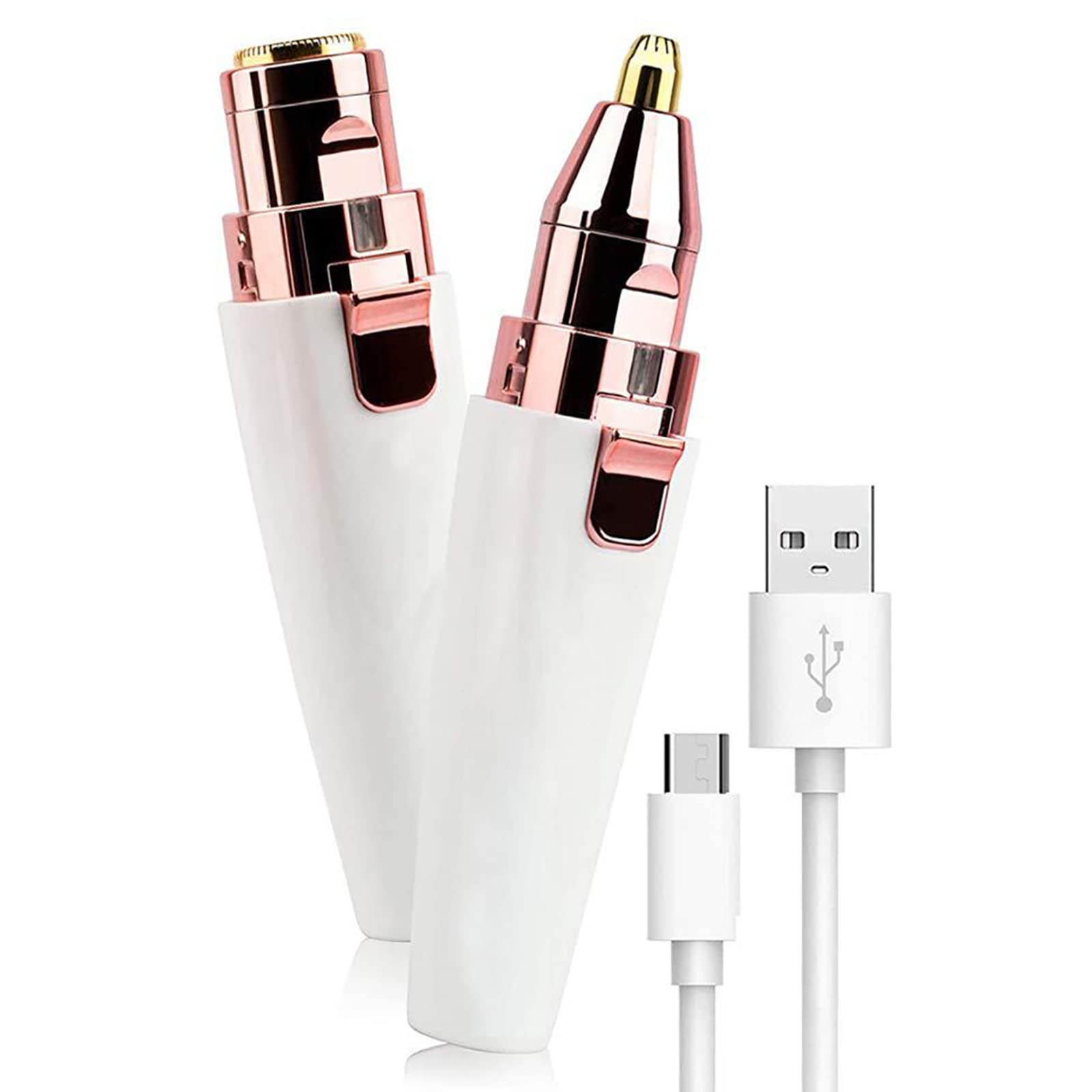 Rehomy 2 in 1 eyebrow trimmer face hair remover rechargeable painless facial hair removal with light for eyebrows lips face body rose gold + white