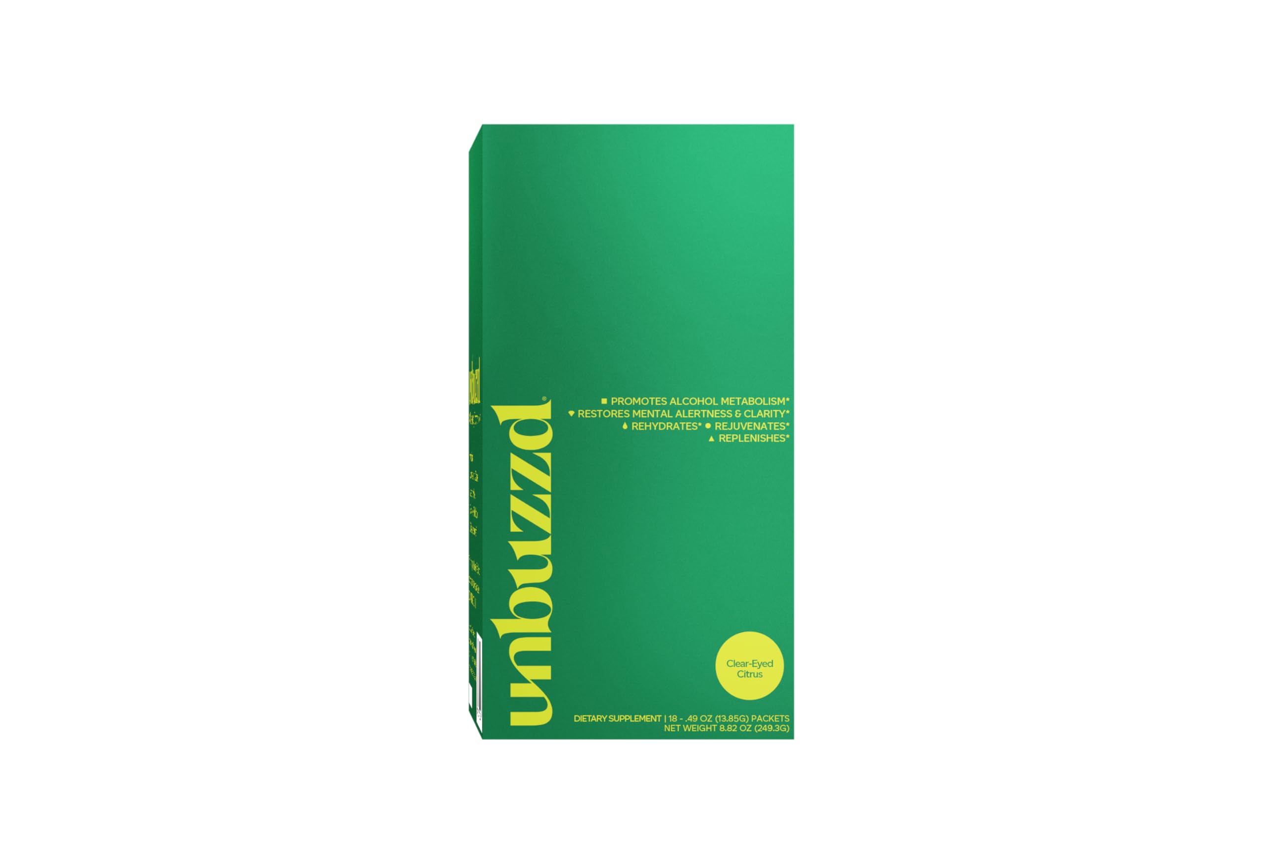 unbuzzd Clear-Eyed Citrus 18-Pack Powder Sticks are Celly Nutrition's groundbreaking wellness supplement designed to help you recover more quickly. This cutting-edge formulation combines vitamins, minerals, and extracts including DHM, green tea extract, and milk thistle. Own Now and What's Next as you quickly feel the benefits. With more hydrating electrolytes than leading sports drinks, stay hydrated and energized. Crafted by a world-class R D team and manufactured in the USA, unbuzzd is your go-to solution for swift recovery and sustained wellness. Own now and what's next with unbuzzd.