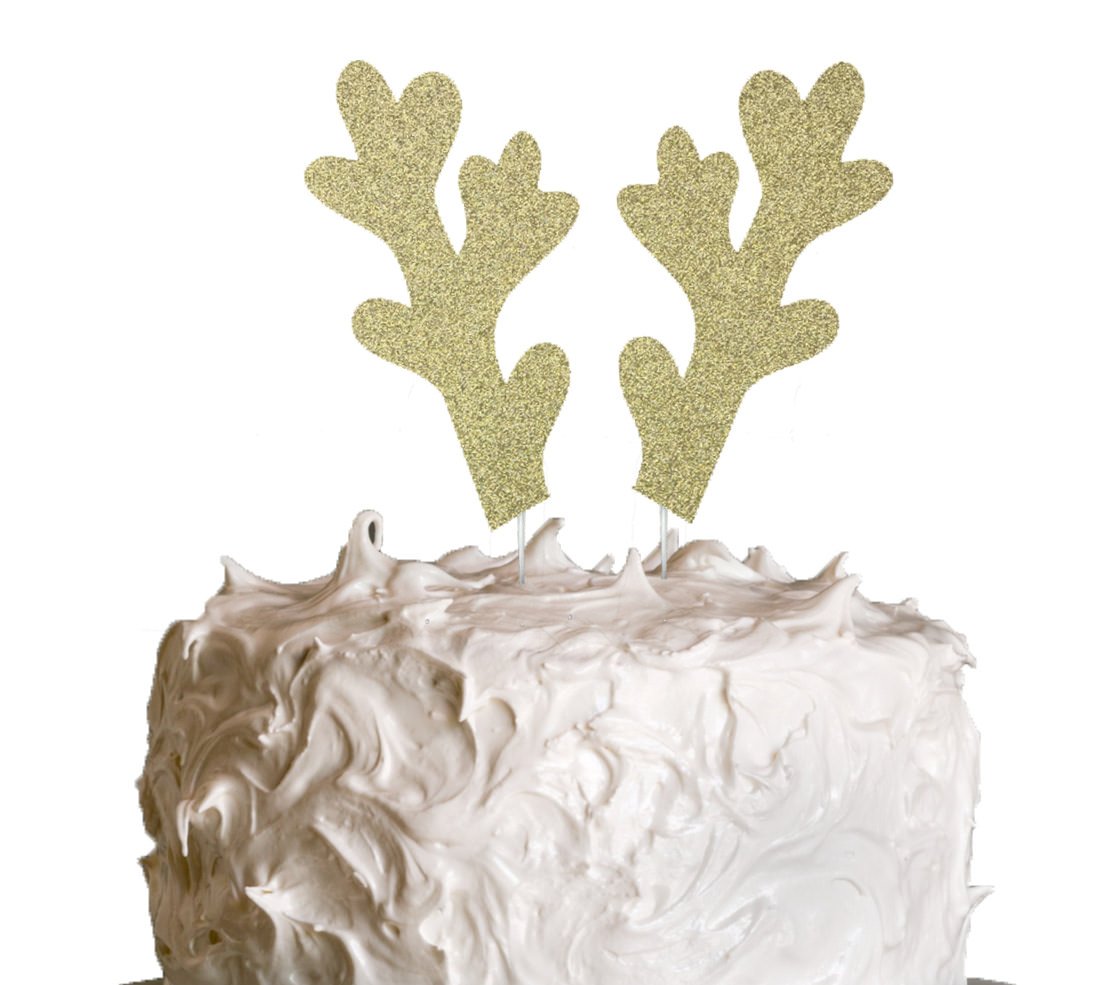 Reindeer Antlers Christmas Cake Topper - Glitter Xmas Cake Topper - Glittery Gold