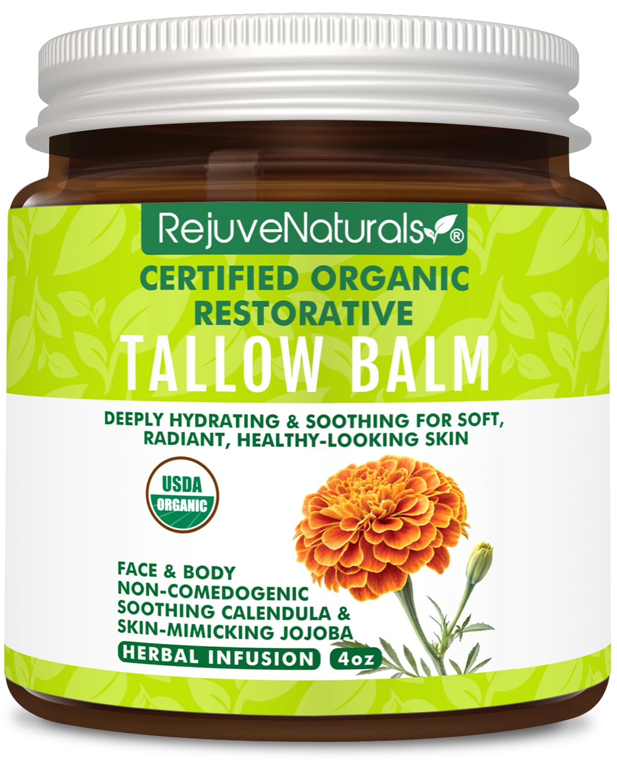 Discover the unparalleled luxury of our USDA Certified Organic creamy balm, crafted with the finest ingredients nature has to offer. Every element—from grass-fed, grass-finished tallow and hydrating jojoba oil to protective beeswax, soothing calendula, and a delicate blend of lavender and vanilla essential oils—meets the highest organic standards, ensuring your skin receives nothing less than pure, nourishing care. This rich, velvety balm glides on smoothly, delivering deep hydration to lips, hands, and dry patches without any greasy residue, leaving skin soft, supple, and radiant. Gentle enough for even a baby's delicate skin, it's a versatile essential safe for the whole family. Perfect for face and body, this non-comedogenic formula absorbs effortlessly, promoting balanced, healthy-looking skin without clogging pores. Simplify your skincare routine with one travel-friendly jar packed with nutrient-dense goodness, designed to provide lasting moisture and soothing relief wherever life takes you.One Jar, Endless Uses: Simplify your routine with a single, multi-purpose balm that tackles dryness from head to toe. Packed with pure, nutrient-rich ingredients, this creamy essential delivers lasting care in a convenient, travel-friendly jar. Non-Clogging, Skin-Loving Care: Designed for face and body, this creamy balm absorbs effortlessly without clogging pores, promoting balanced, healthy-looking skin. It's your go-to for daily moisture that supports your skin's natural radiance. Gentle Enough for All, Even Babies: This versatile balm is crafted with care to nurture every skin type, from delicate baby skin to hardworking hands. Soothe, hydrate, and protect with a single jar that's safe and effective for the whole family. Creamy Hydration That Packs a Punch: Our rich, velvety balm melts into your skin, delivering deep moisture to lips, hands, and dry patches. Its creamy texture glides on smoothly, leaving no greasy residue—just soft, supple skin that glows with health. Purely USDA Certified Organic Bliss: Indulge in a creamy balm crafted with 100 USDA Certified Organic ingredients—grass-fed, grass-finished tallow, nourishing jojoba oil, soothing beeswax and calming calendula. Your skin deserves this luxurious, nature-approved treat.